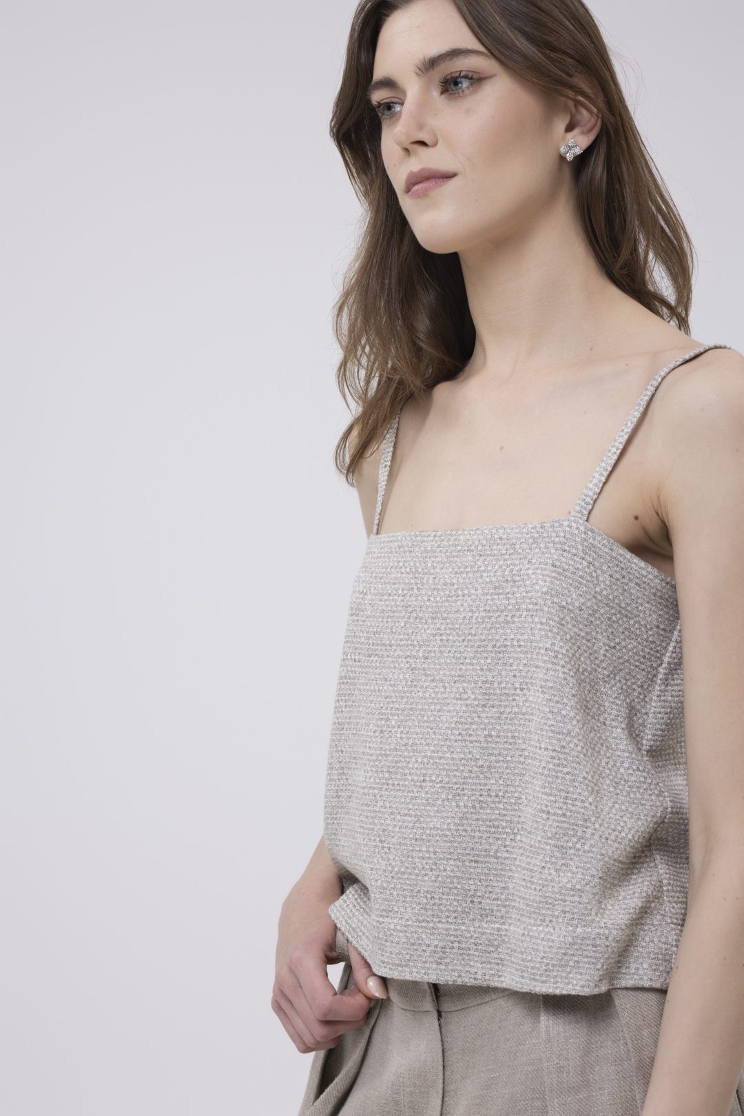 Top BAZA pasuje do wszystkiego. Uszyty z przewiewnej dzianiny bawełnianej, o lekkiej strukturze. Dzięki prostemu krojowi i cienkim ramiączkom sprawdzi się zarówno w minimalistycznych stylizacjach, jak i jako subtelna baza pod marynarkę czy narzutkę. Jest lekki, ale trzyma formę. Dyskretny, ale z charakterem. Ten model działa tam, gdzie nie chcesz przeszkadzać sylwetce – tylko ją delikatnie podkreślić.