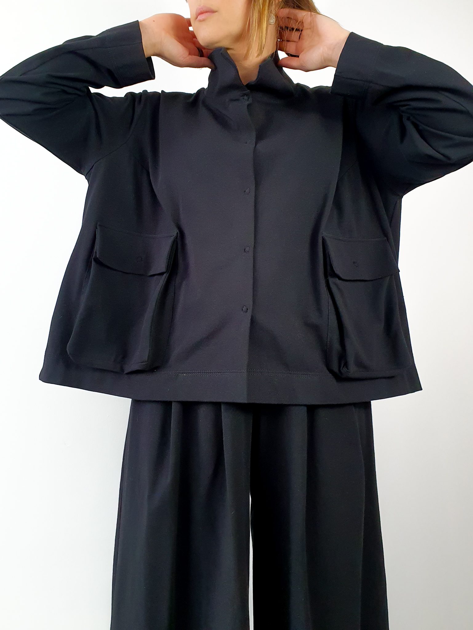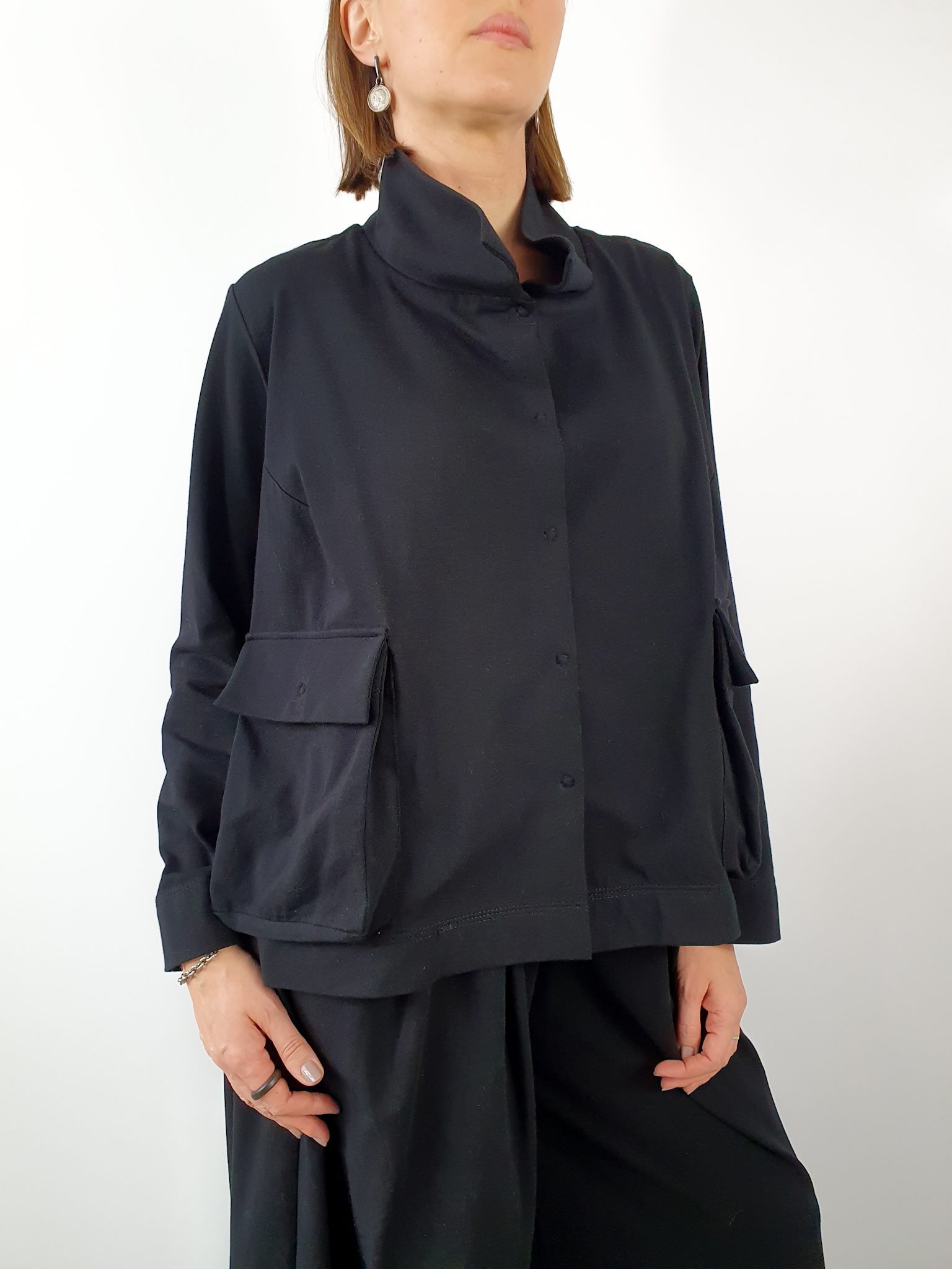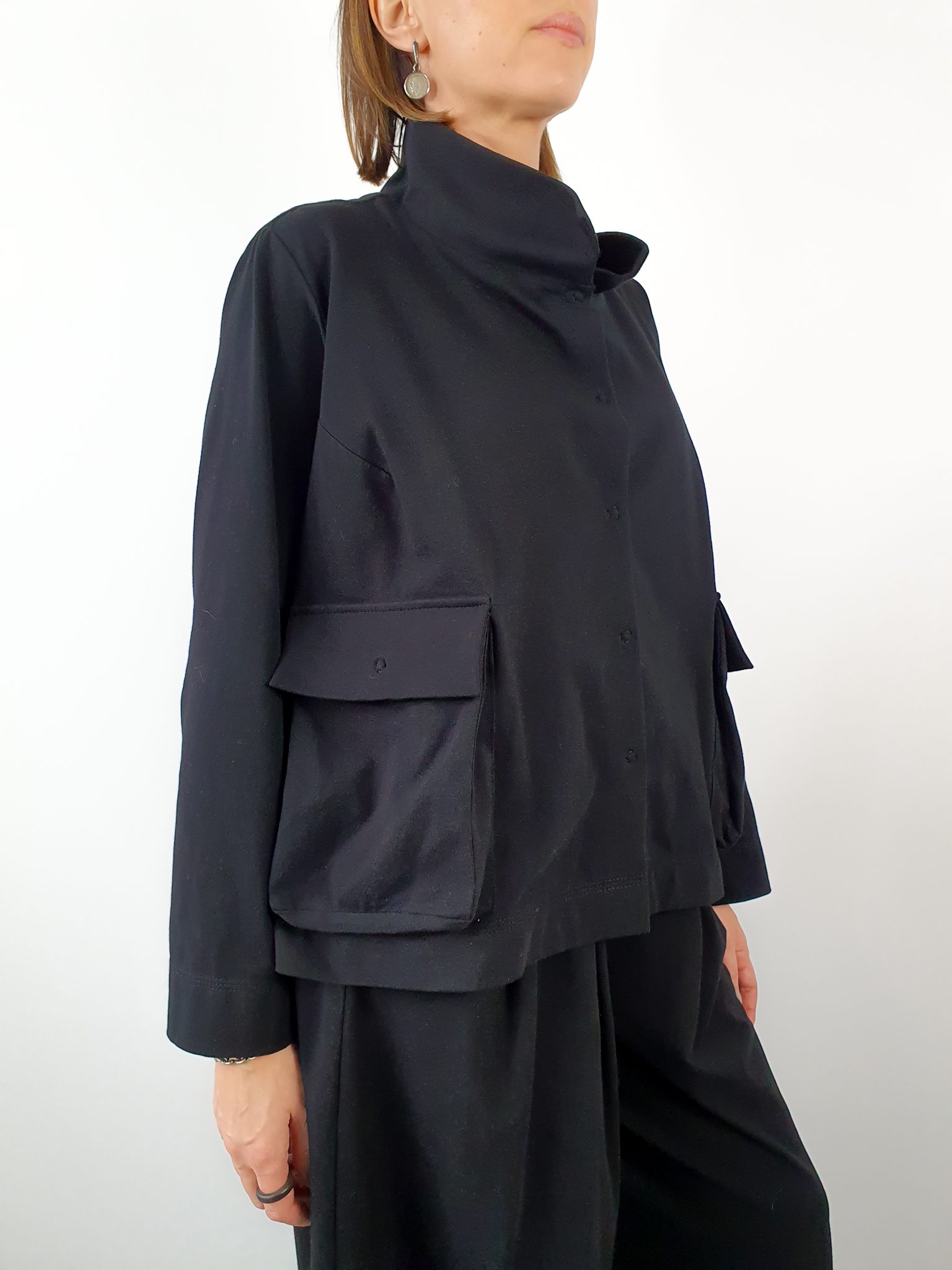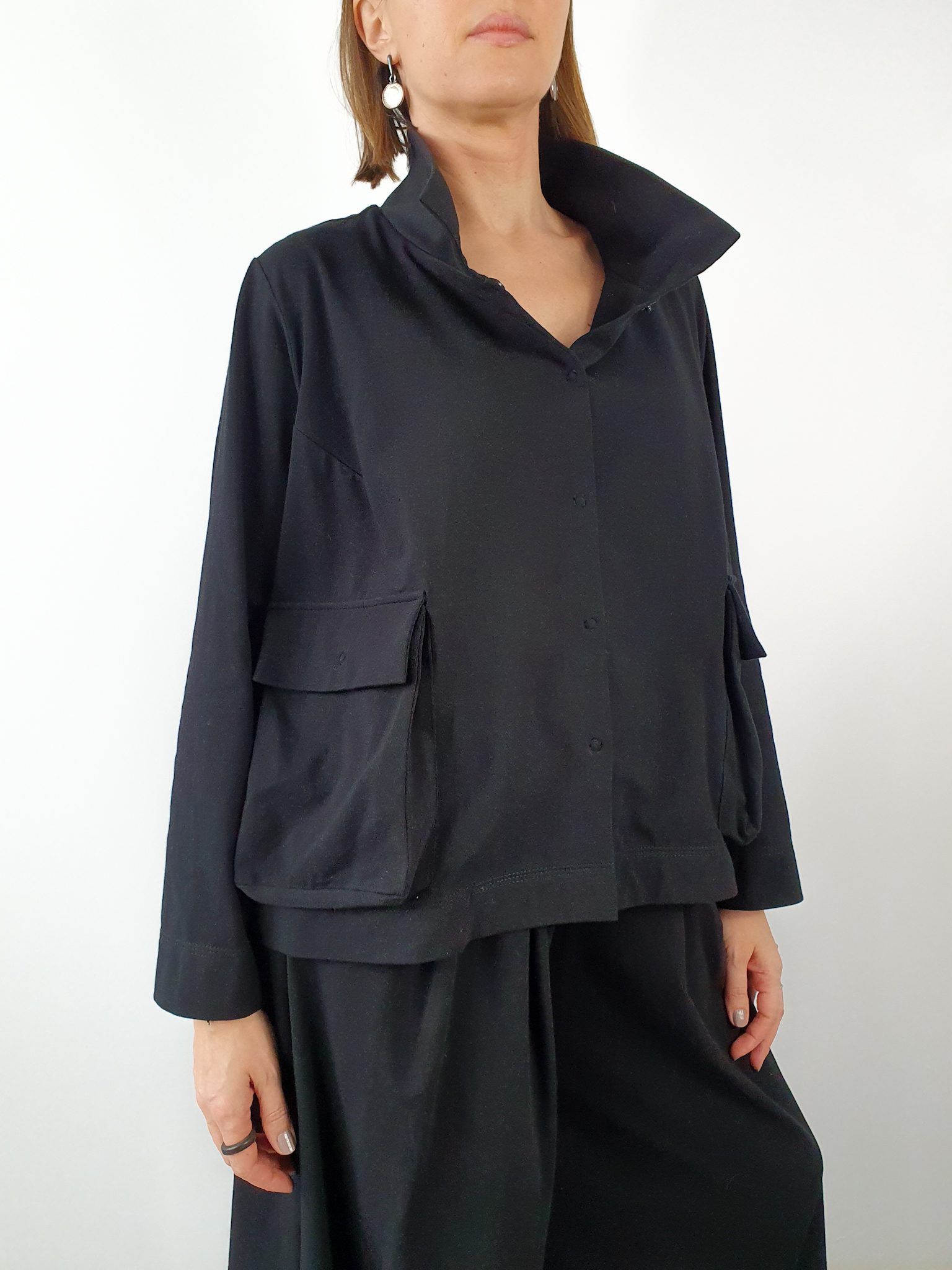 Bluza SZANELKA to idealna propozycja dla pań, które cenią sobie luz w niebanalnym stylu. Fason rozszerzany, stójka i kieszenie z przodu, zapinana na zatrzaski. Może pełnić też rolę narzutki, czy lekkiej kurtki.