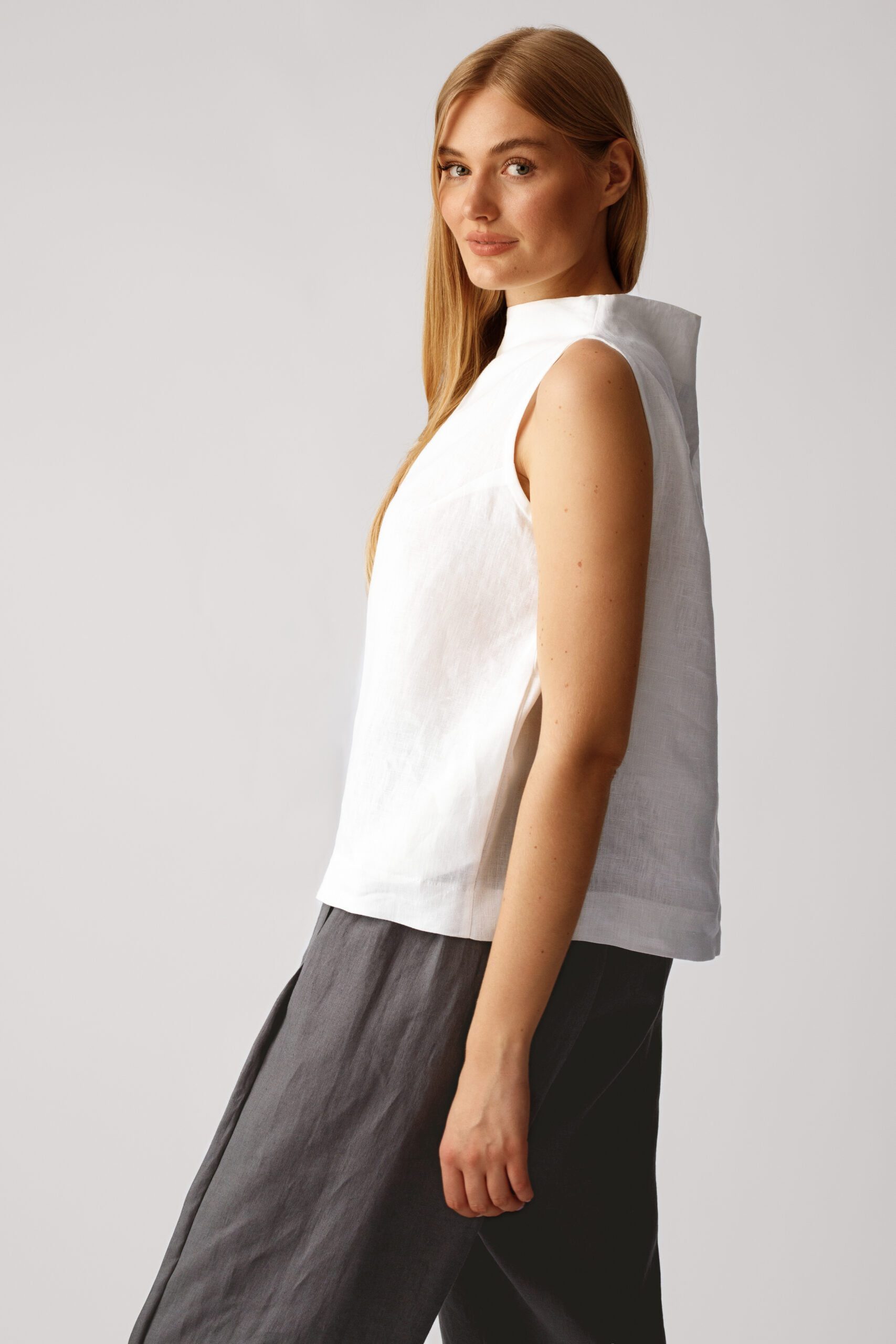 Krój bluzki TRAPEZ doskonale dopasowuje się do różnych sylwetek, podkreślając jednocześnie subtelne linie ciała. Bluzka jest niezwykle uniwersalna, zarówno wizualnie, jak i w noszeniu. Dzięki lekkiej stójce dodaje wyjątkowego charakteru i elegancji, nada Ci pewność siebie i stylowy wygląd. Posiada kieszenie.