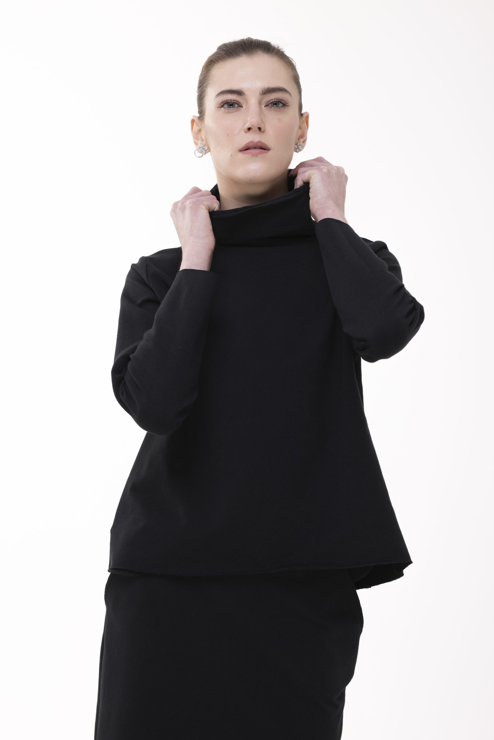 FALDA to minimalistyczna bluza, w której konstrukcja odgrywa kluczową rolę .Klasyczna forma z subtelnym przełamaniem. Pliska dodaje jej przestrzeni i delikatnego ruchu, a wysoki golf podkreśla jej nowoczesny charakter.