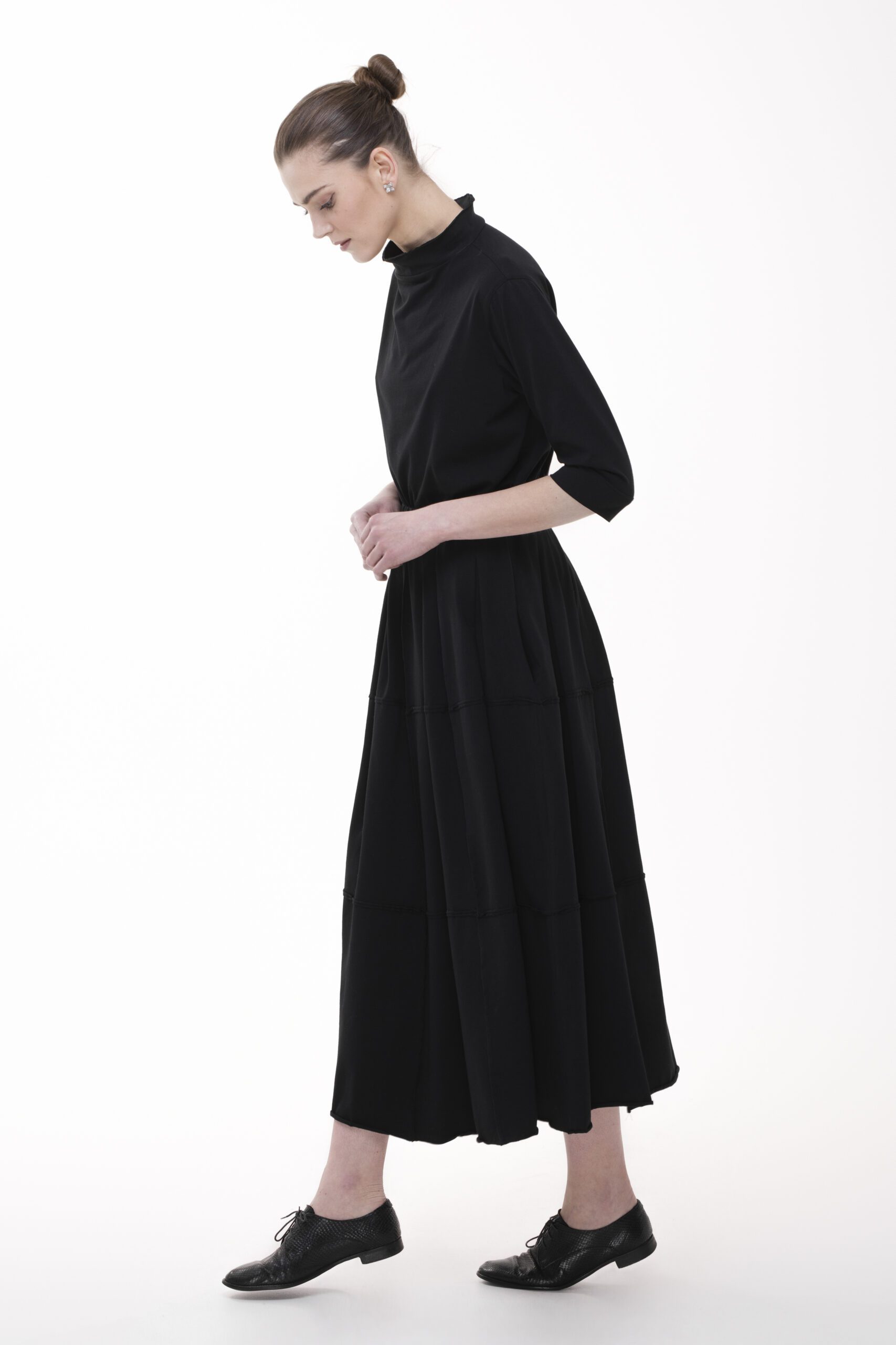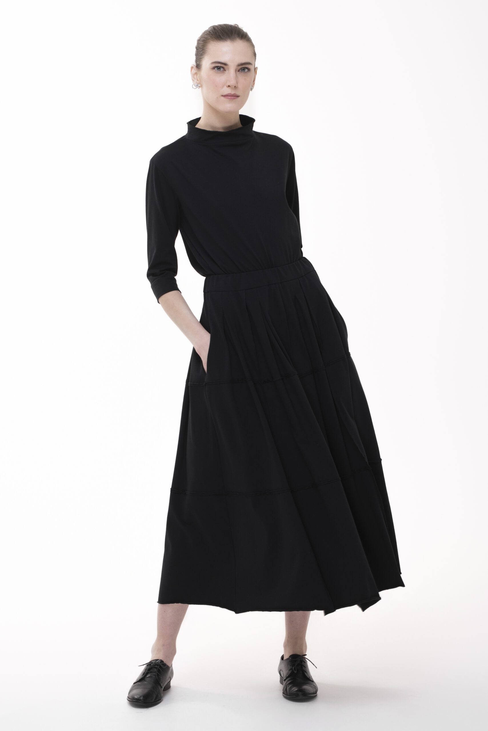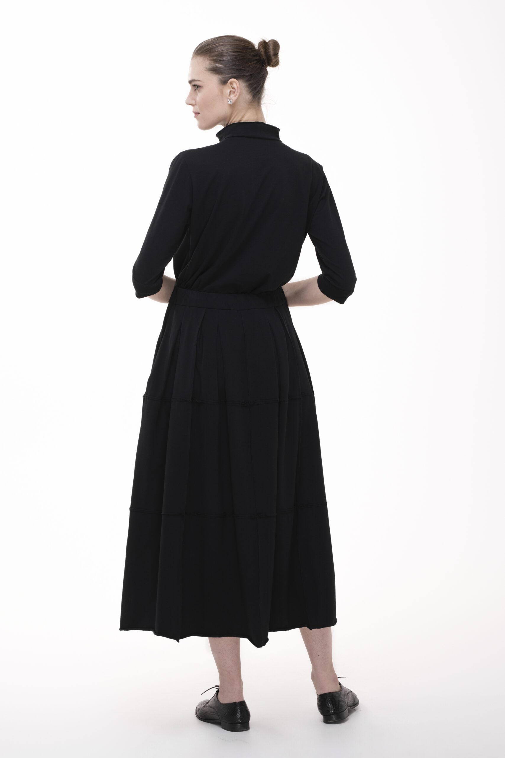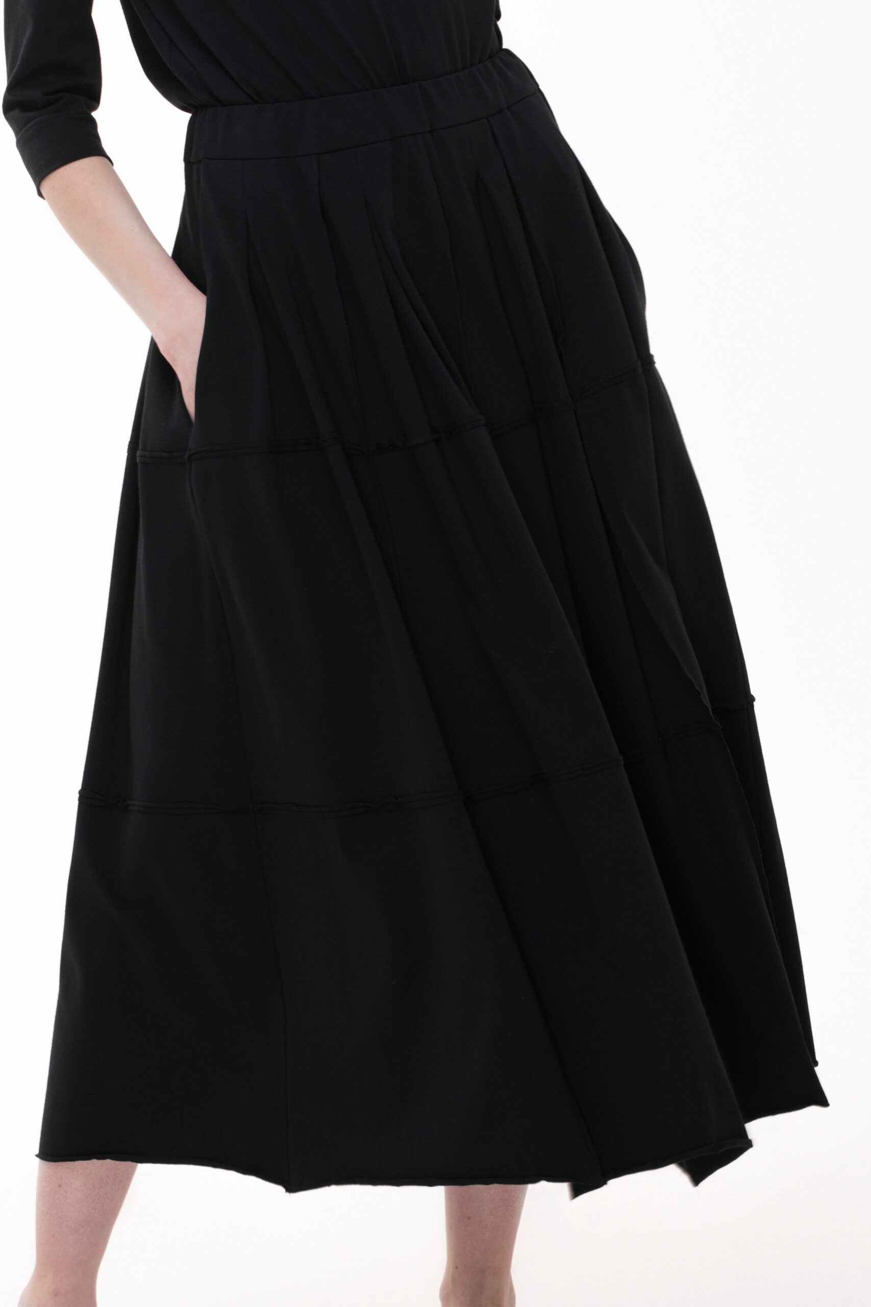 FRAZA – czarna bawełniana spódnica midi z przeszyciami