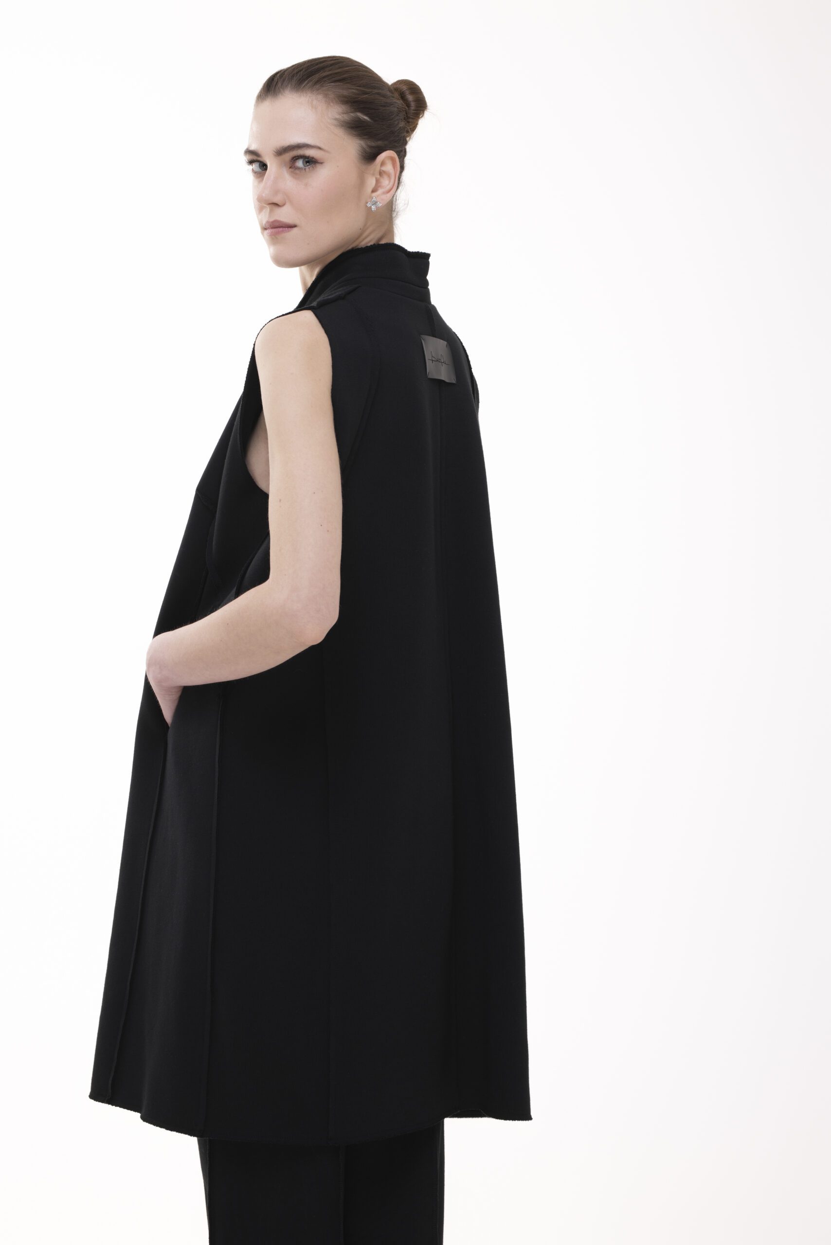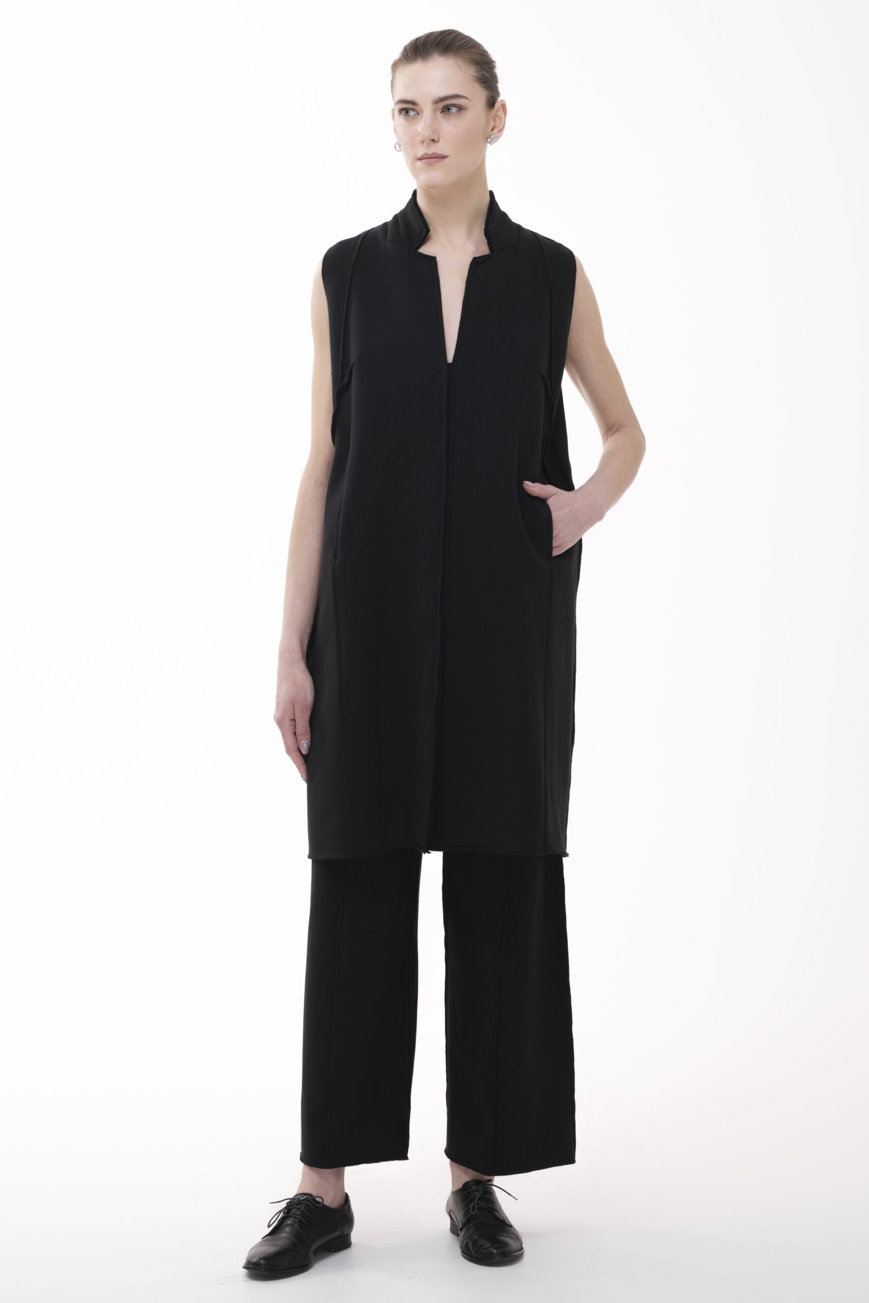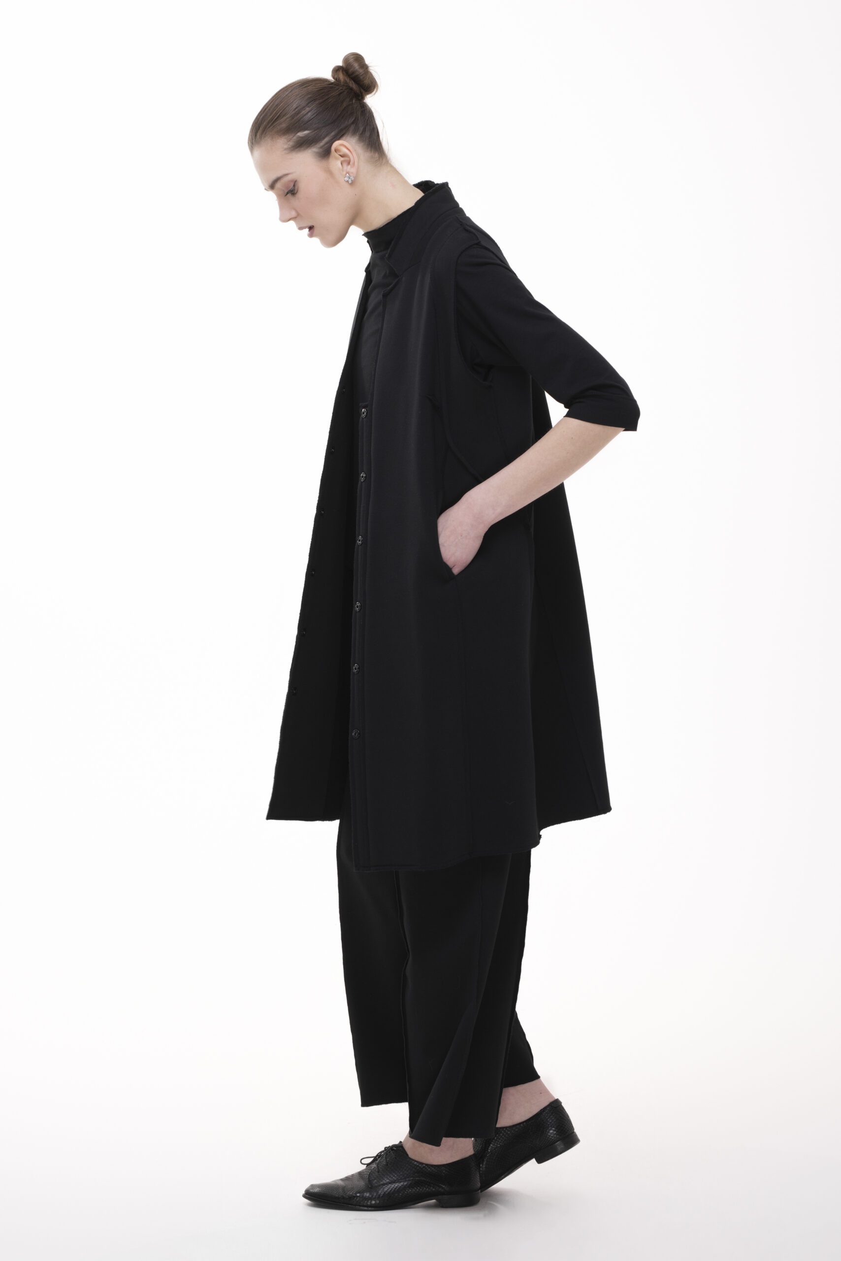 Minimalistyczny krój i czyste linie sprawiają, że doskonale komponuje się z warstwowymi zestawami – możesz narzucić ją na dopasowany golf, koszulę czy nawet sukienkę. Kamizela LINIA to swoboda i przemyślana forma w jednym.