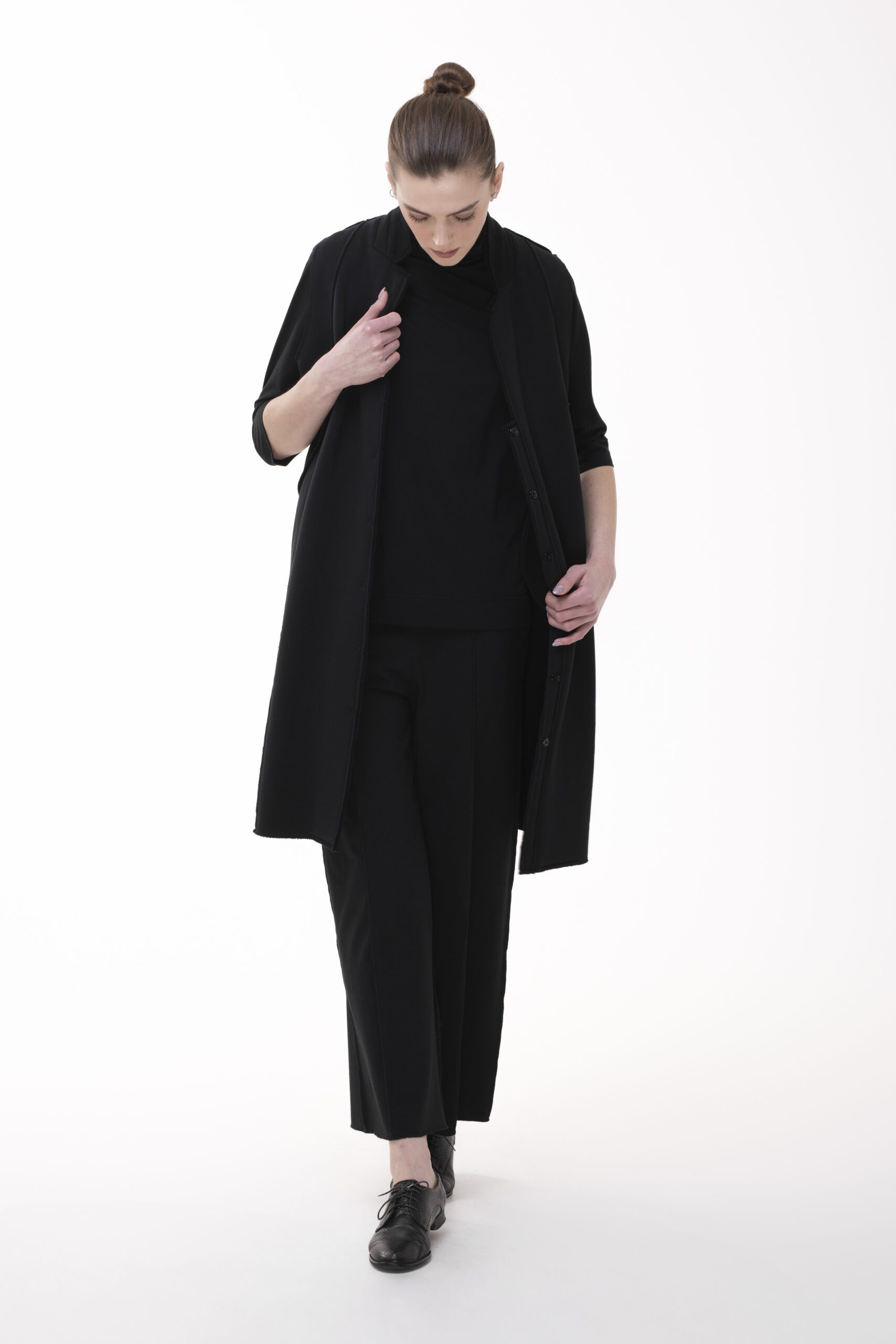 LINIA to kamizela, która redefiniuje warstwowość w garderobie. Uszyta z miękkiej, bawełnianej dzianiny, zapewnia komfort i swobodę ruchów, a jednocześnie zachowuje wyrazistą, geometryczną sylwetkę.