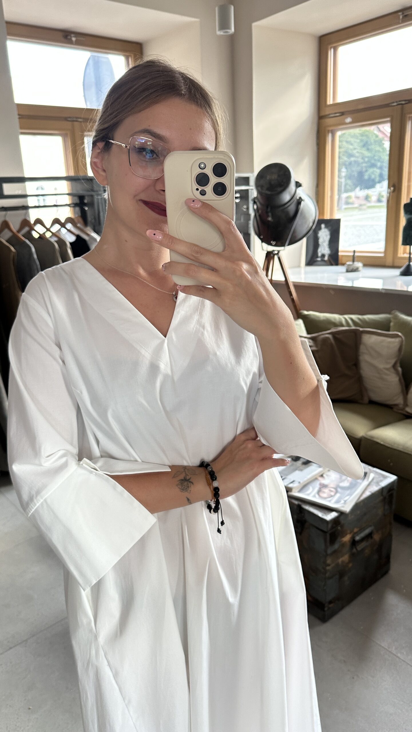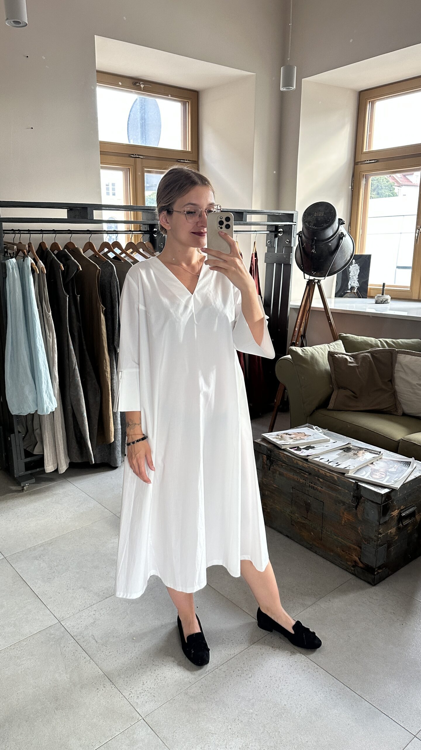 Mankietowa – oversize’owa sukienka bawełniana z artystycznymi mankietami