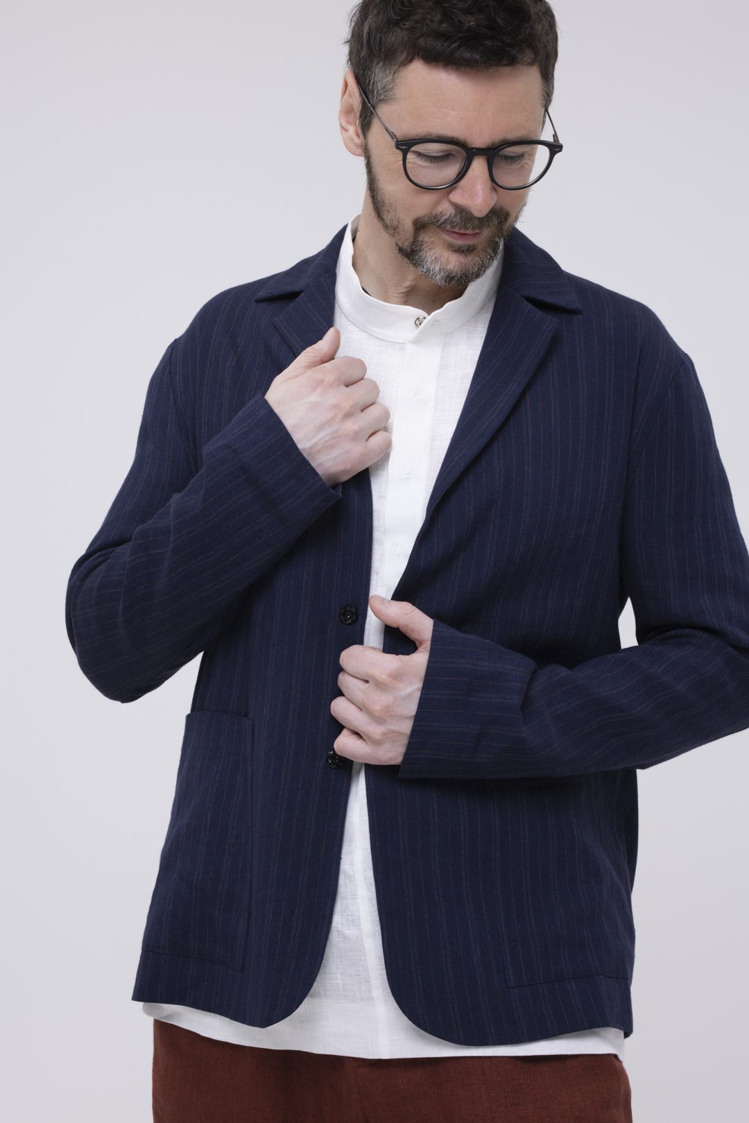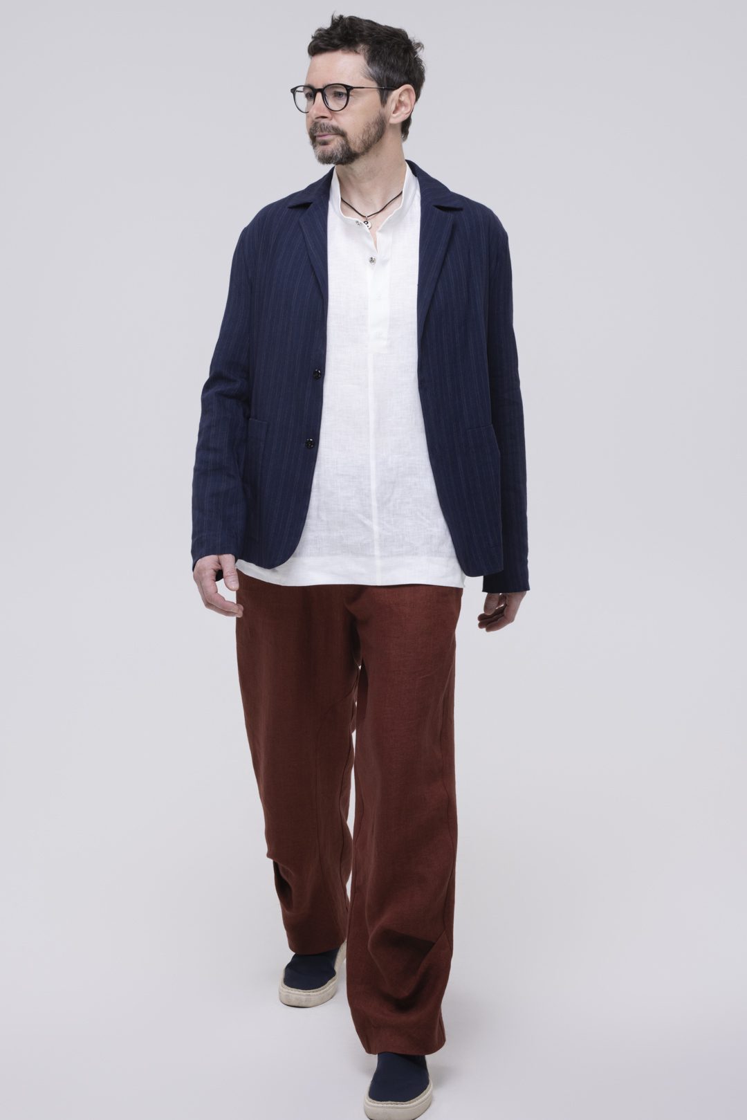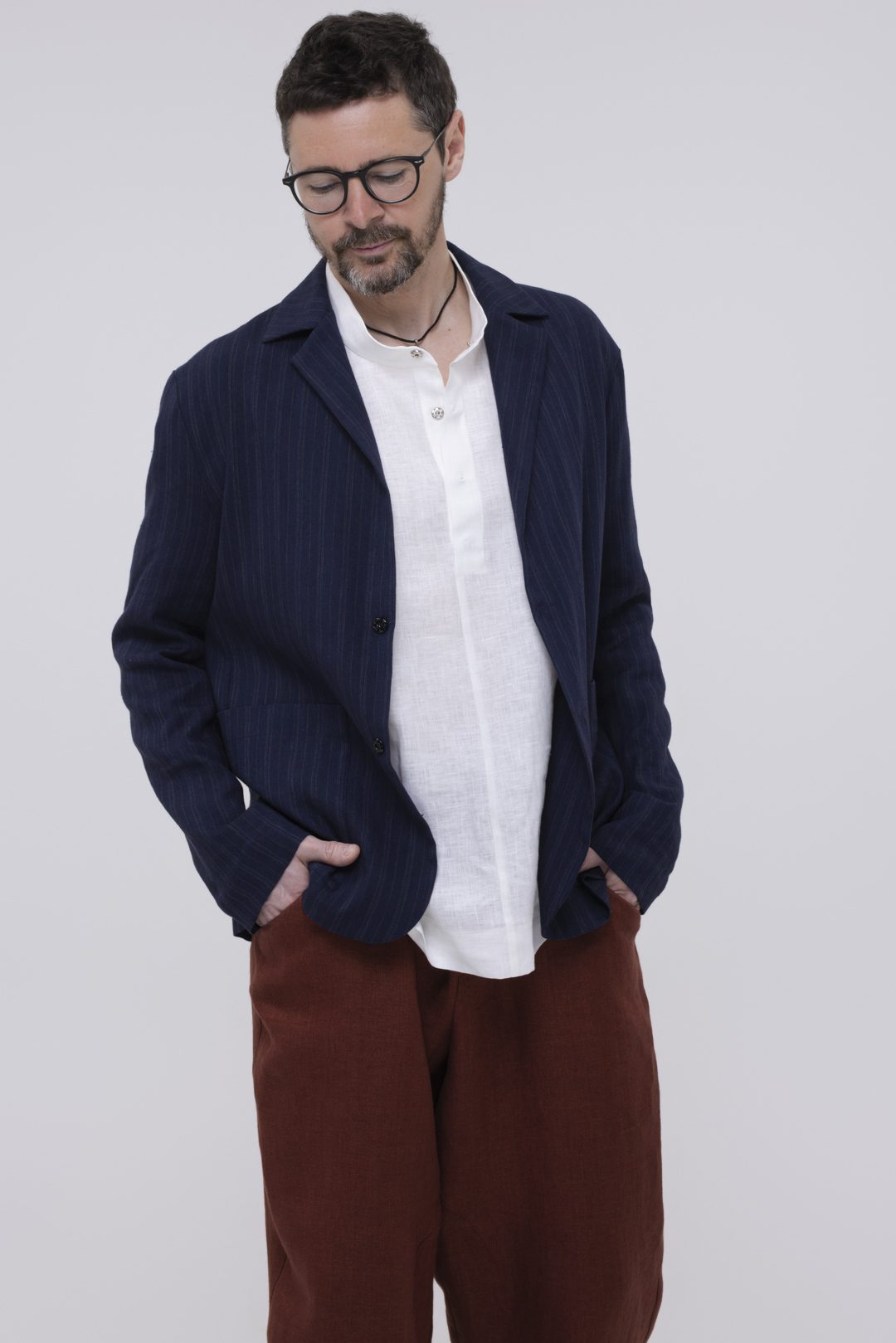 POŁUDNIE to lniana marynarka zaprojektowana z myślą o codziennym użytkowaniu – bez sztywnych zasad. Naturalny len w granatowym kolorze, prosty fason i prążkowany splot sprawiają, że łączy w sobie elegancję i luz. Noś ją jak chcesz – do koszuli, t-shirtu, na co dzień lub jako warstwę w ruchu. POŁUDNIE to marynarka idealna na co dzień – do pracy, na spacer czy casualowe spotkania. Sprawdzi się także na wieczorne wyjścia i różne miejskie okazje, zapewniając stylowy, nowoczesny wygląd.