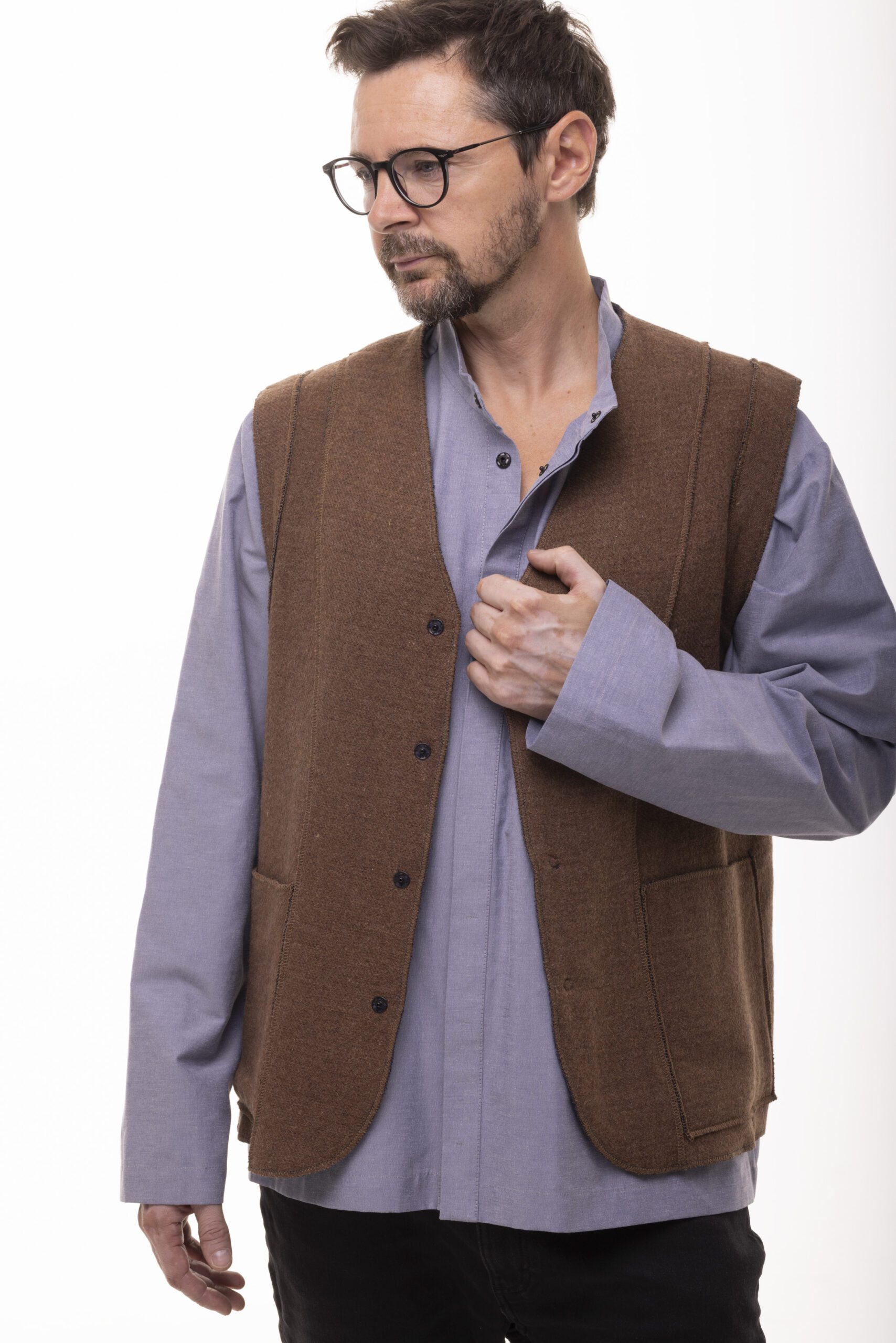 Kamizelka Przełom to dwustronna, wełniana kamizelka, która łączy funkcjonalność z wyjątkowym stylem. Wykonana z naturalnej wełny, zapewnia komfort i ciepło, doskonale sprawdzając się na chłodniejsze dni. Dwustronność pozwala na łatwe dopasowanie do różnych stylizacji – jedna strona to elegancki brąz, natomiast druga, granatowa, nadaje bardziej wyrazistego charakteru. Dzięki temu Przełom daje możliwość wyboru w zależności od nastroju lub okazji.