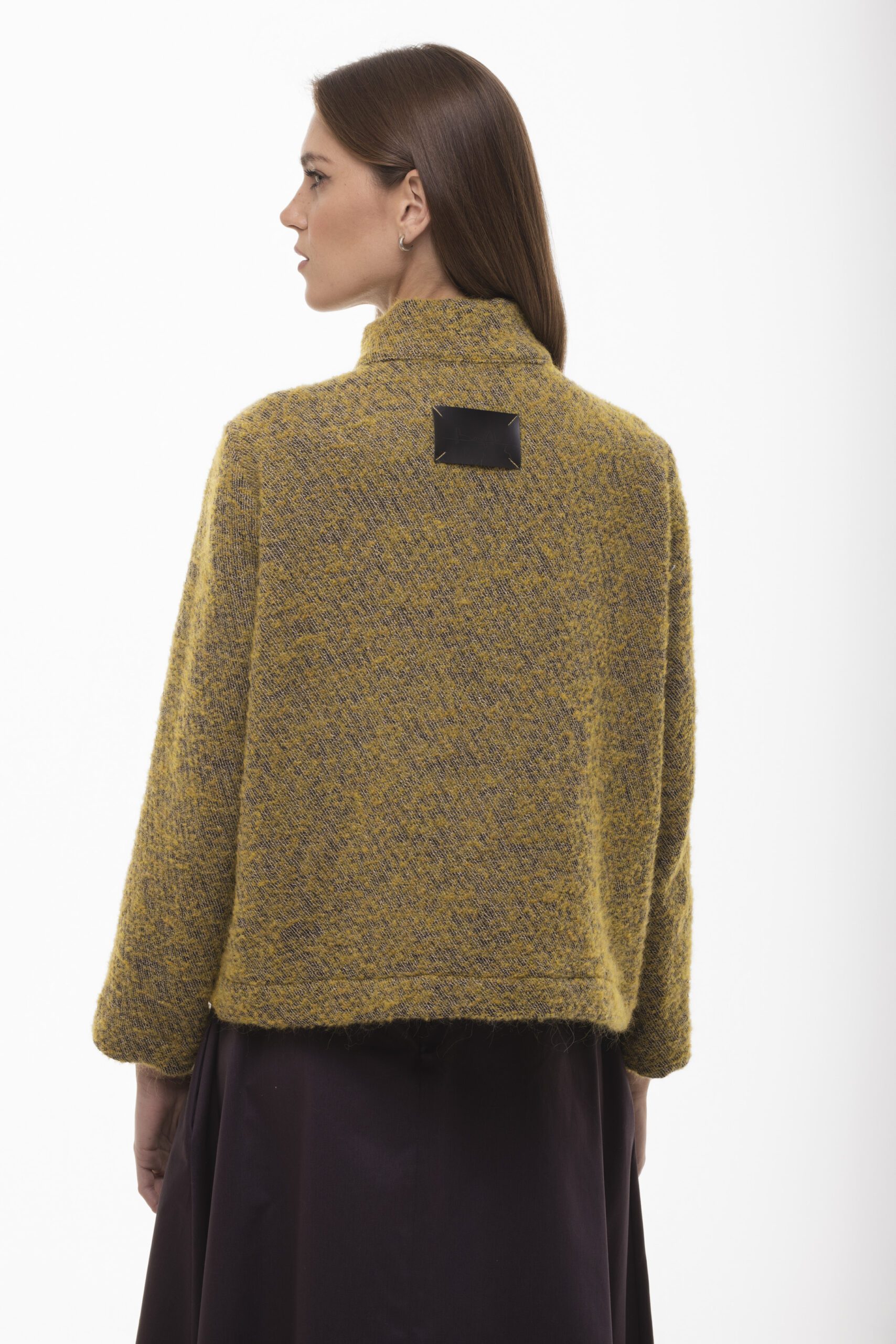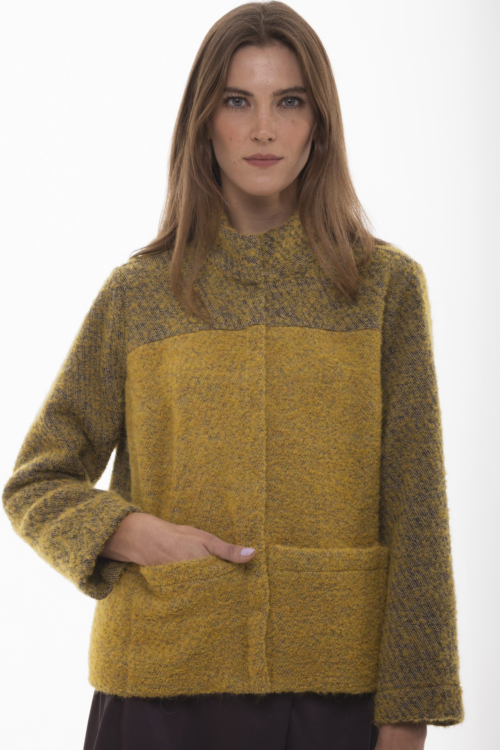 Żakiet Przystań to propozycja, która łączy ciepło, wygodę i wyjątkowy styl, inspirowany kolorami jesieni. Wykonany z miękkiej wełny, żakiet wyróżnia się połączeniem dwóch kolorów. Kontrast między kolorami dodaje mu głębi i charakteru, tworząc niepowtarzalny melanż, który przyciąga uwagę.