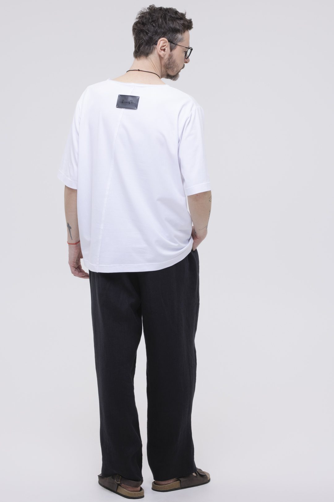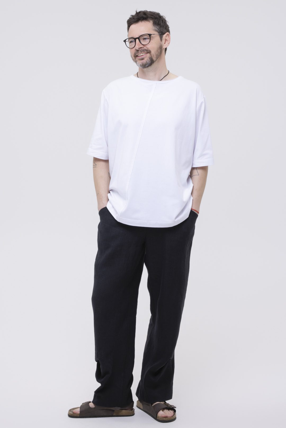T-shirt z asymetrycznym przeszyciem Basic, który nie jest banalny. Minimalistyczny na pierwszy rzut oka. Ale wystarczy spojrzeć bliżej.