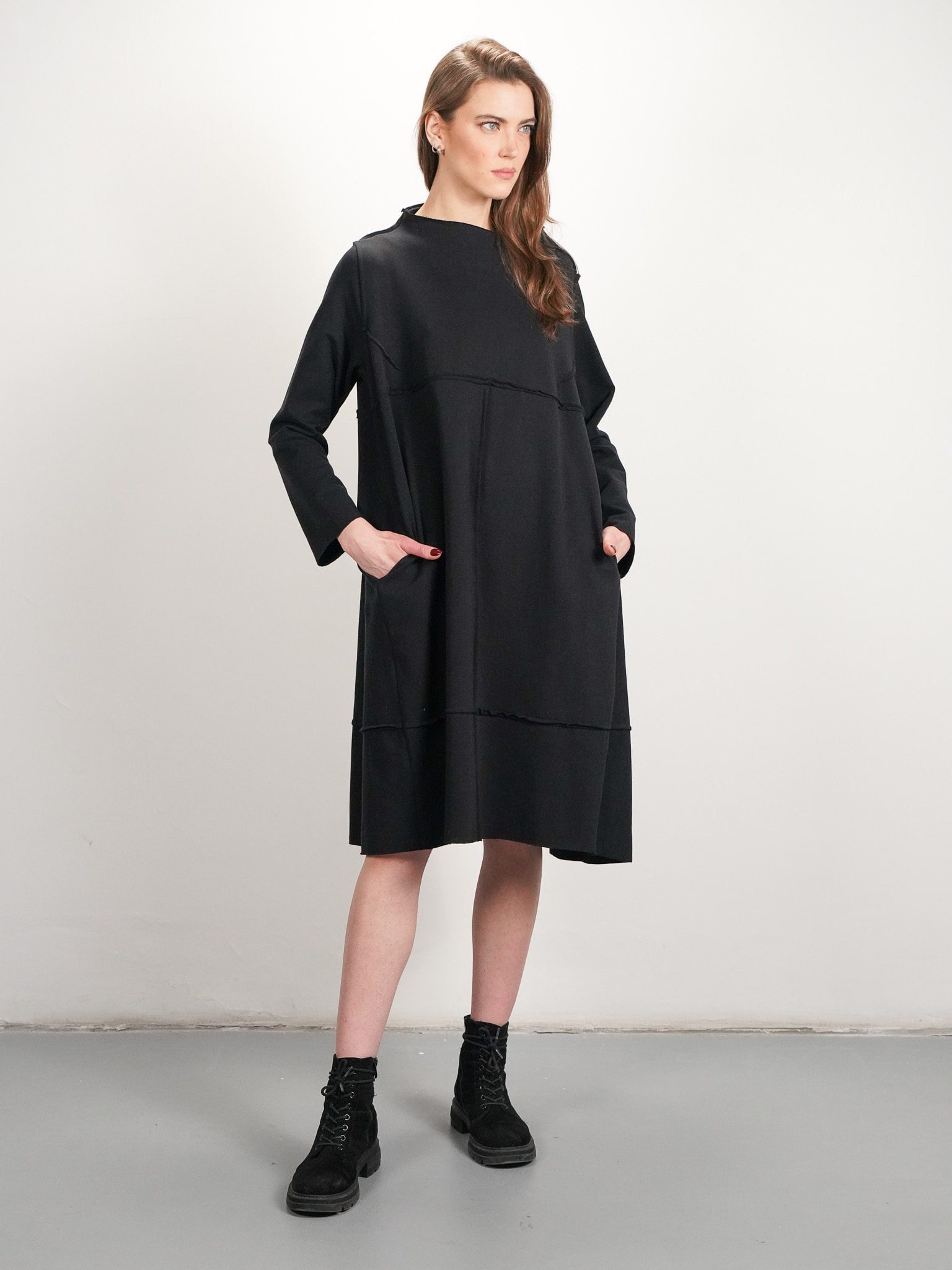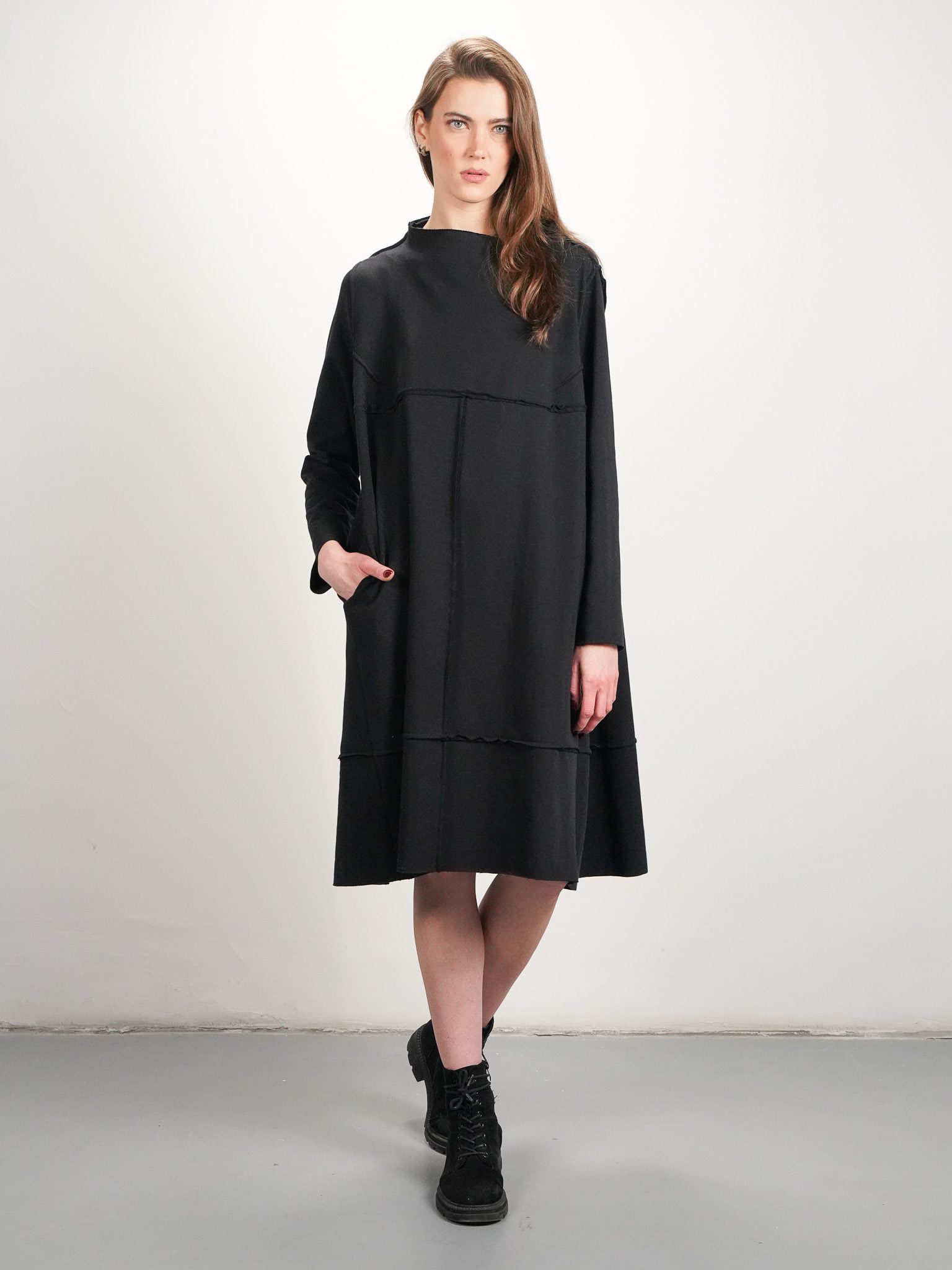 Sukienka FILIŻANKA CZARNEJ KAWY to połączenie prostoty i finezji w wyjątkowej formie. Wykonana z wysokiej jakości dzianiny bawełnianej zachwyca swoim minimalistycznym stylem i subtelnymi detalami.