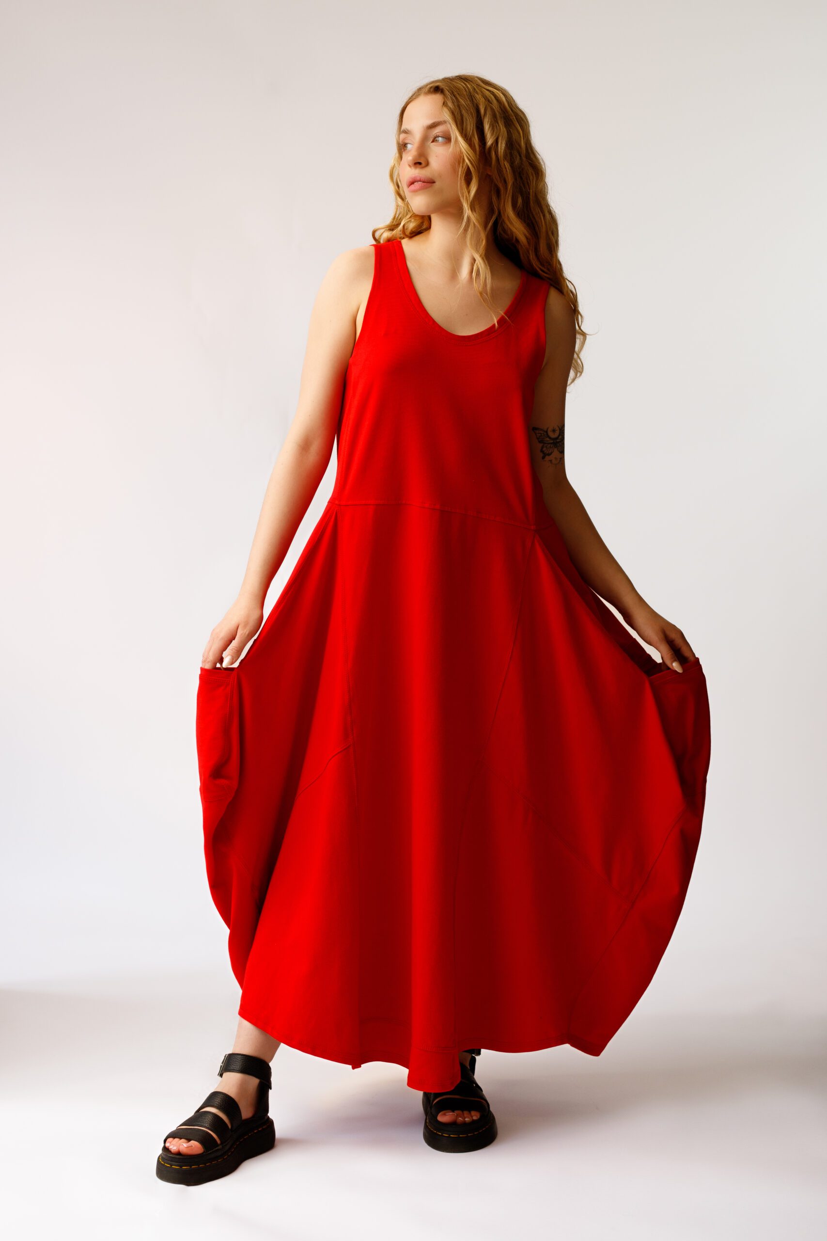 Mankietowa – oversize’owa sukienka bawełniana z artystycznymi mankietami