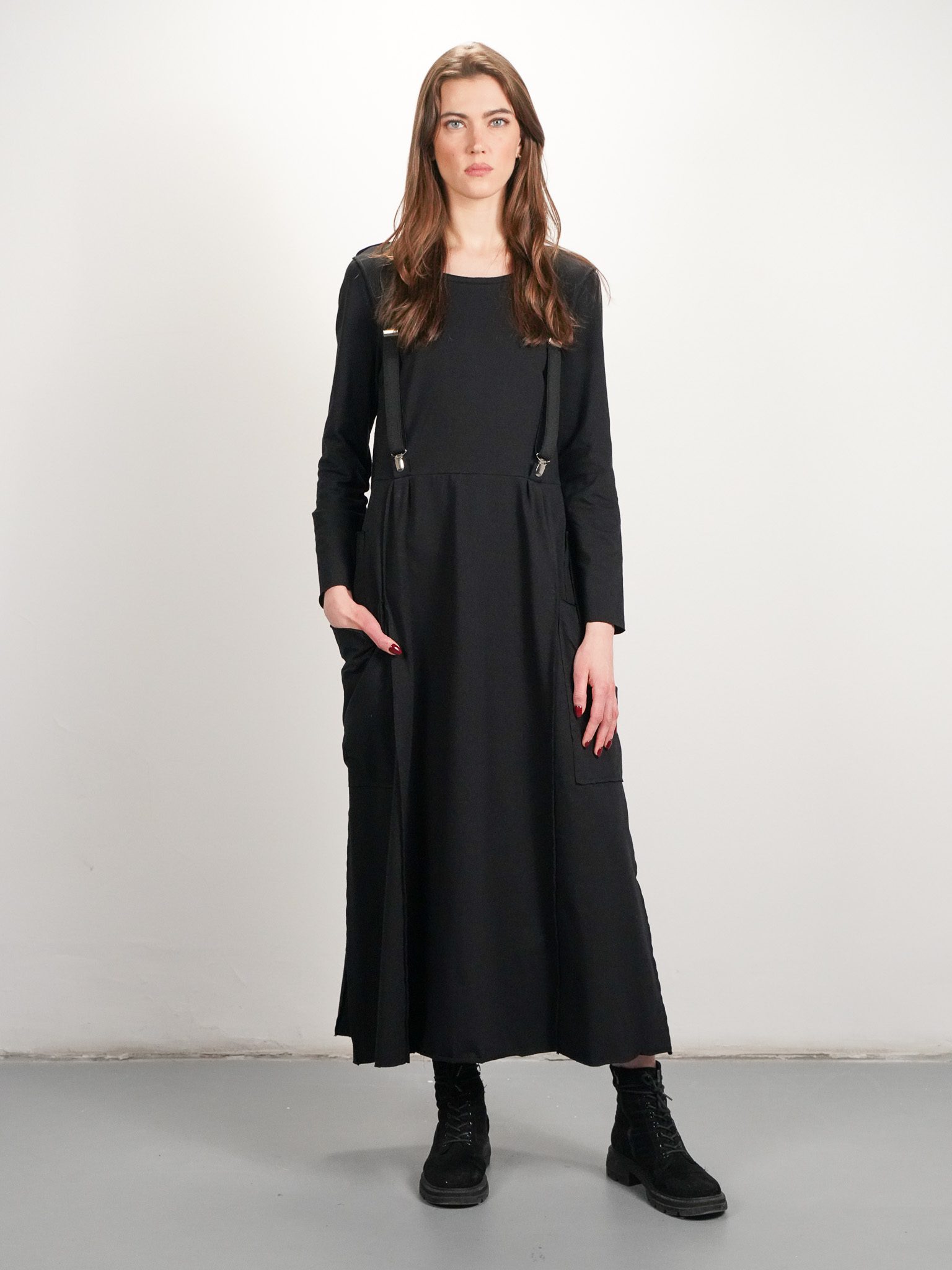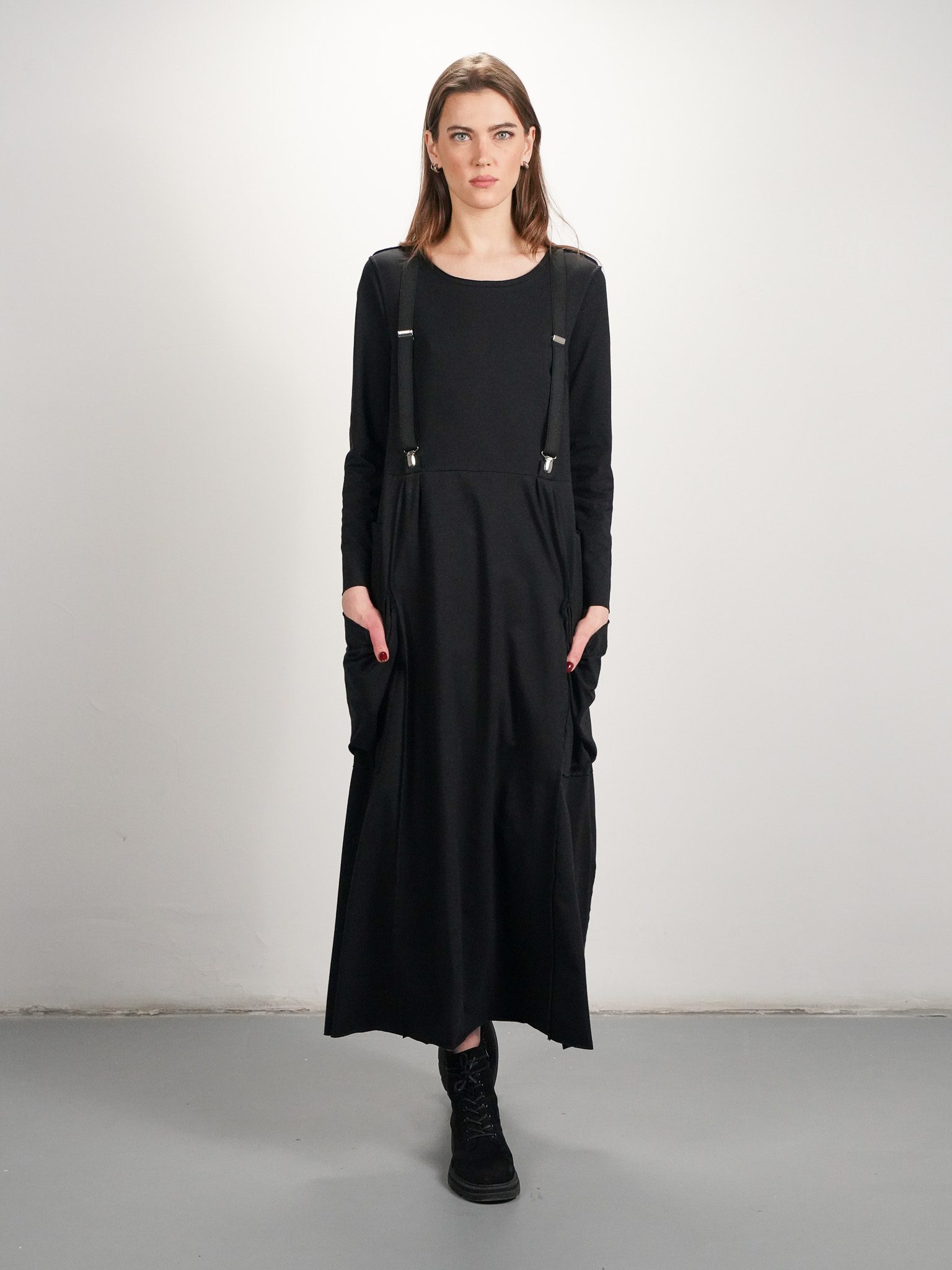 Wykonana z wysokiej jakości dzianiny bawełnianej. Sukienka LIST DO B. zapewnia nie tylko wygodę noszenia, ale także wyjątkowy charakter całej stylizacji. Jej długi rękaw dodaje elegancji, podczas gdy nietypowe detale, takie jak szelki* czy kieszenie w różnych rozmiarach, nadają całości artystycznej nuty.