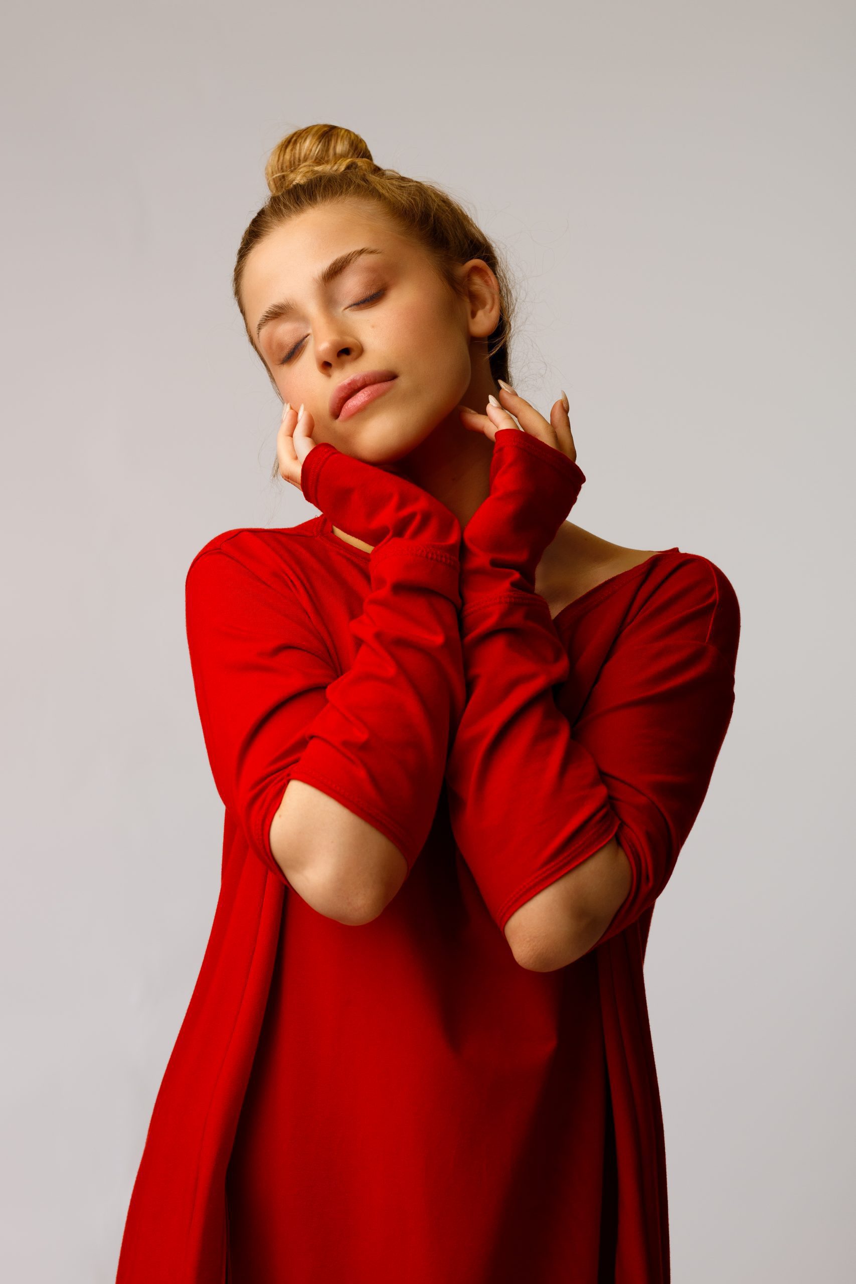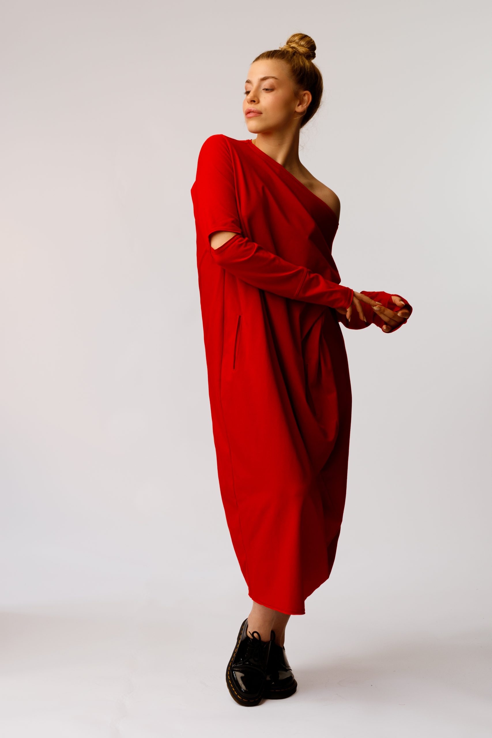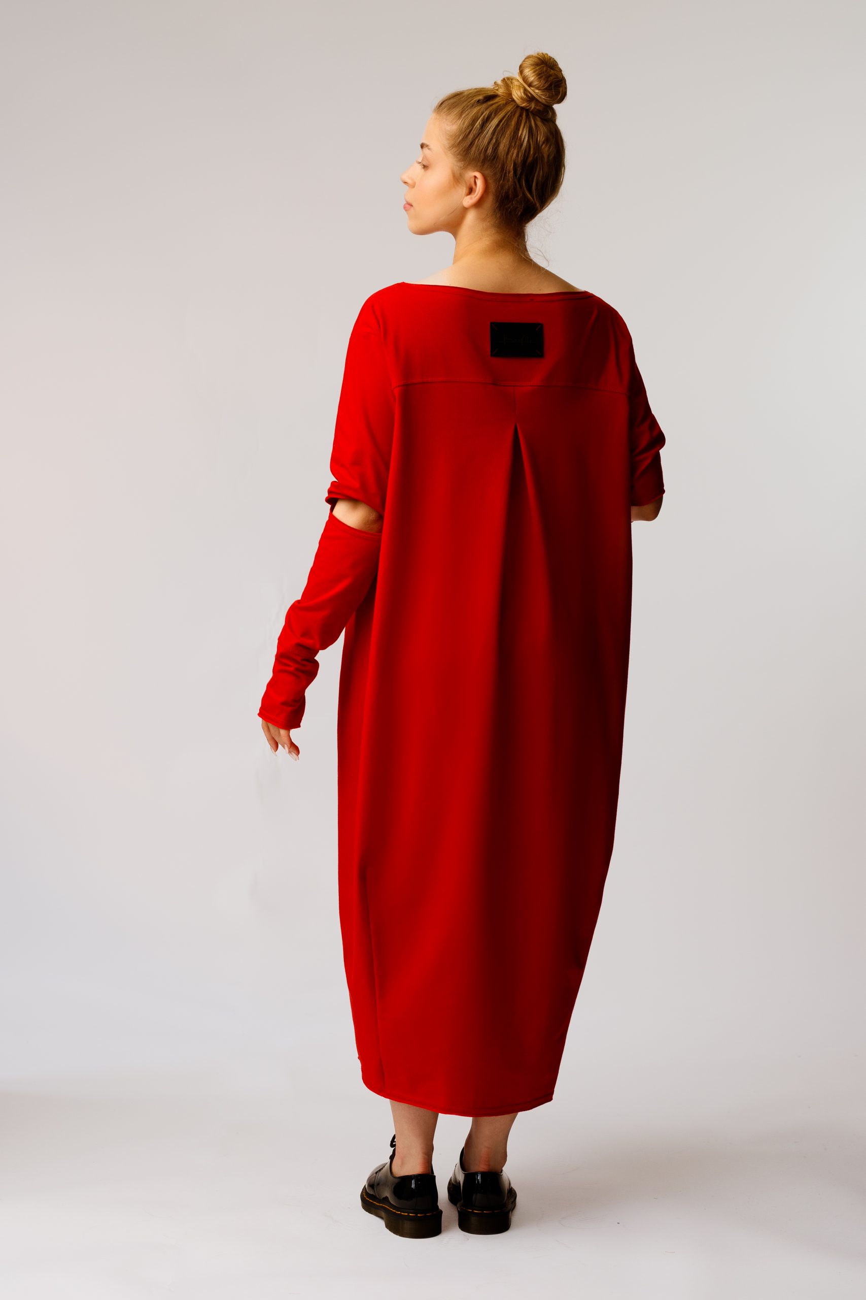 Mankietowa – oversize’owa sukienka bawełniana z artystycznymi mankietami