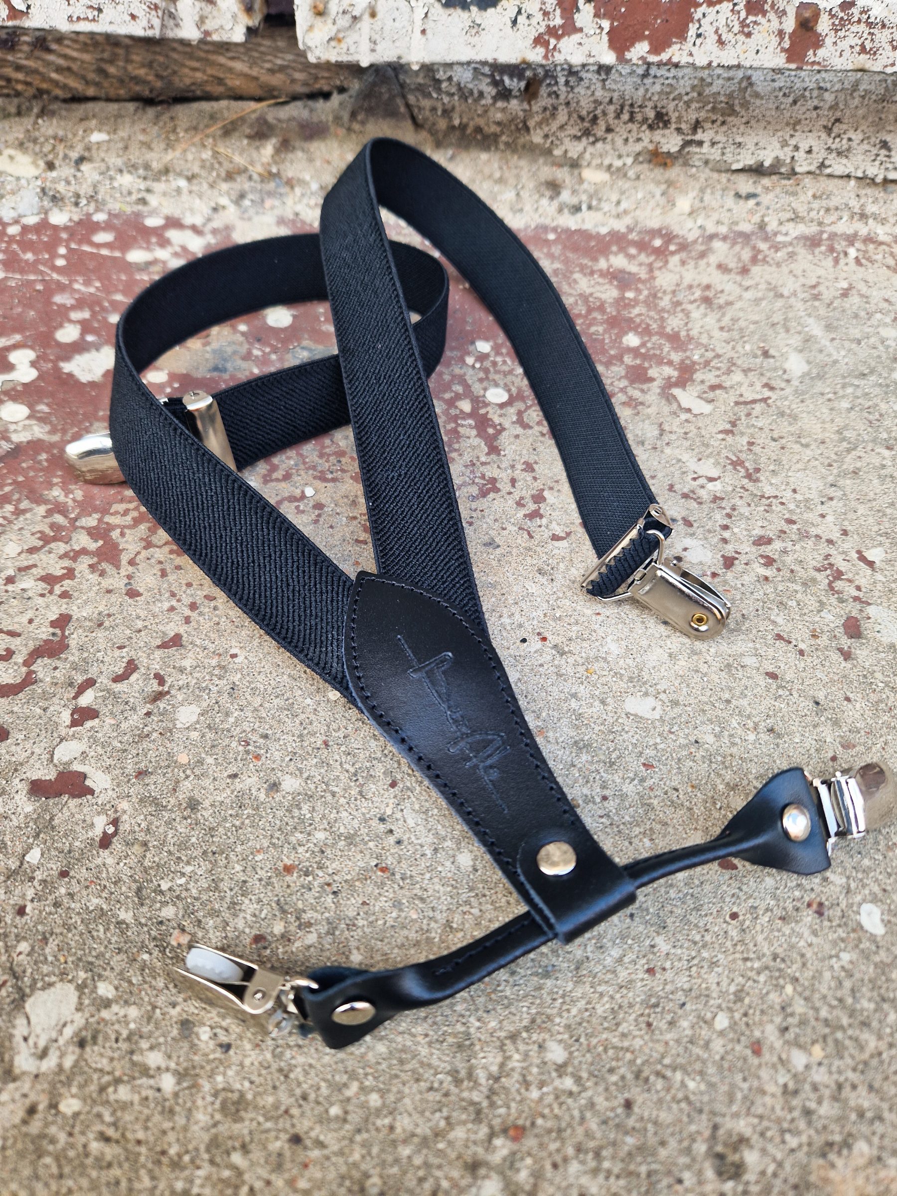 Krótkie szelki wykonane z gumy i skóry naturalnej, z regulacją i logo marki. Idealne do sukienek, np. naszej KOKIETERKI. Świetnie podkręcają stylizację.