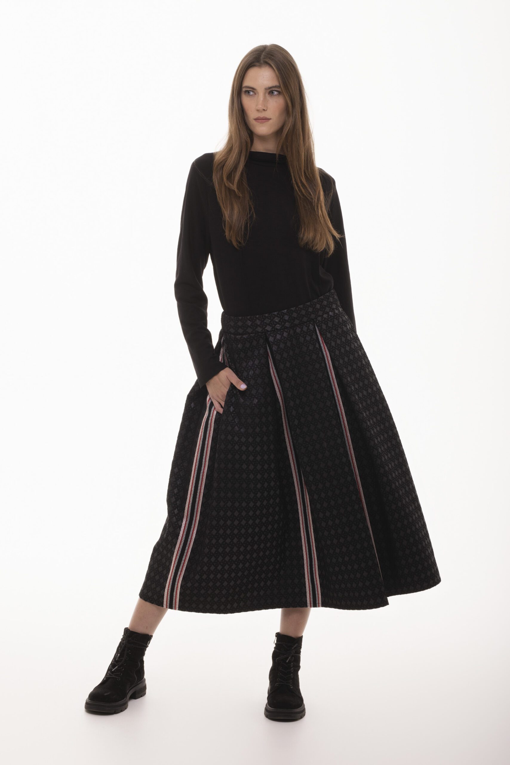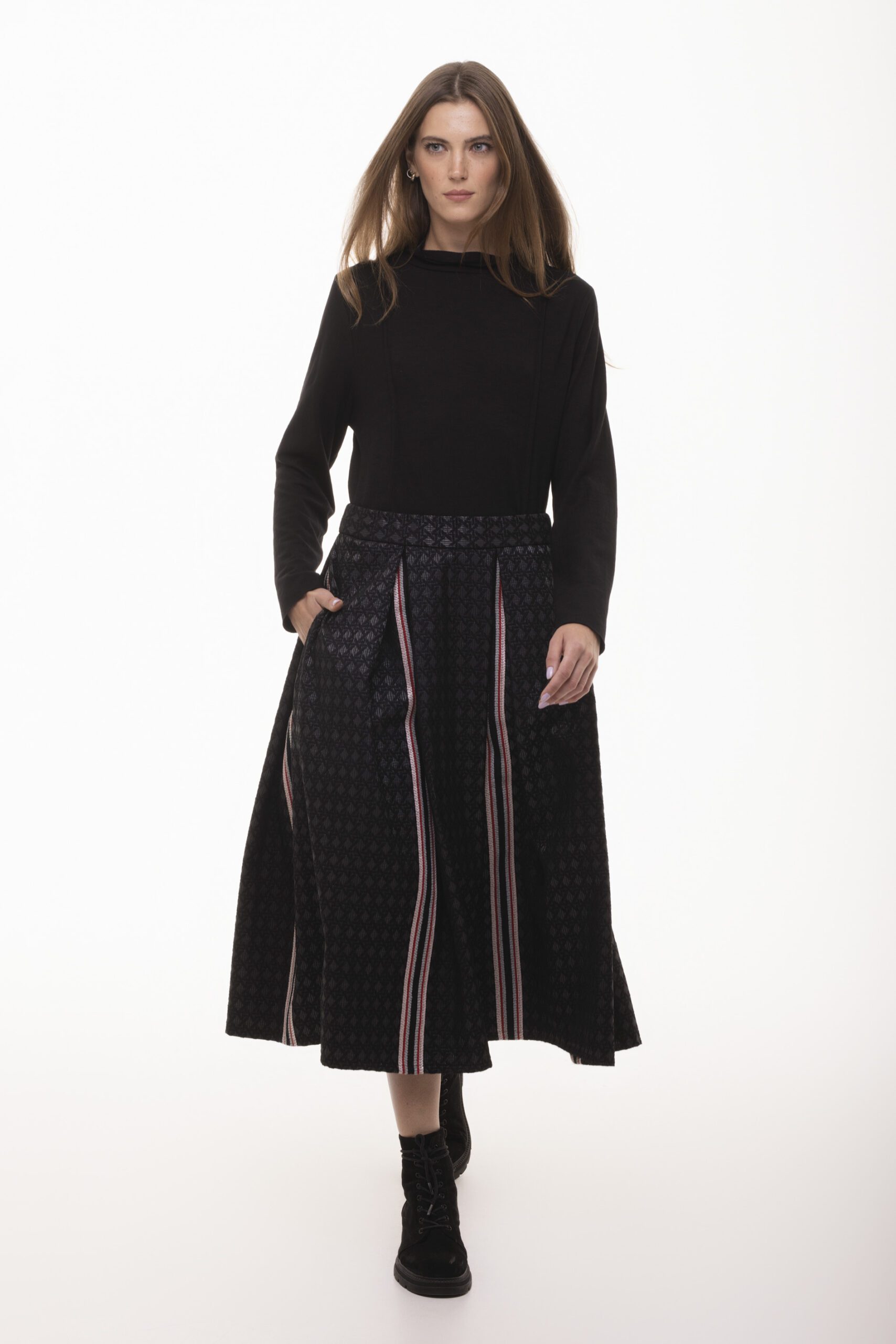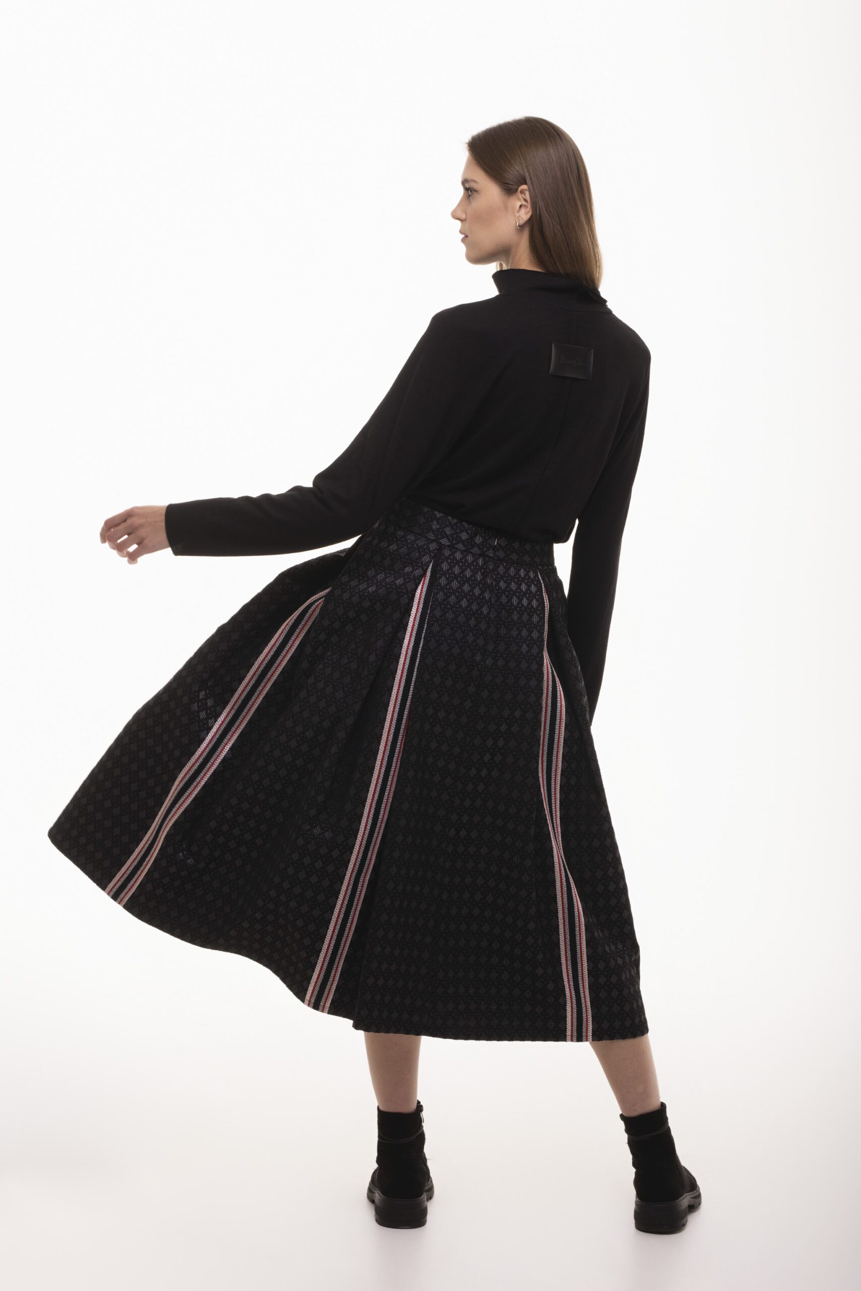 Tajemnica – rozkloszowana, żakardowa spódnica midi