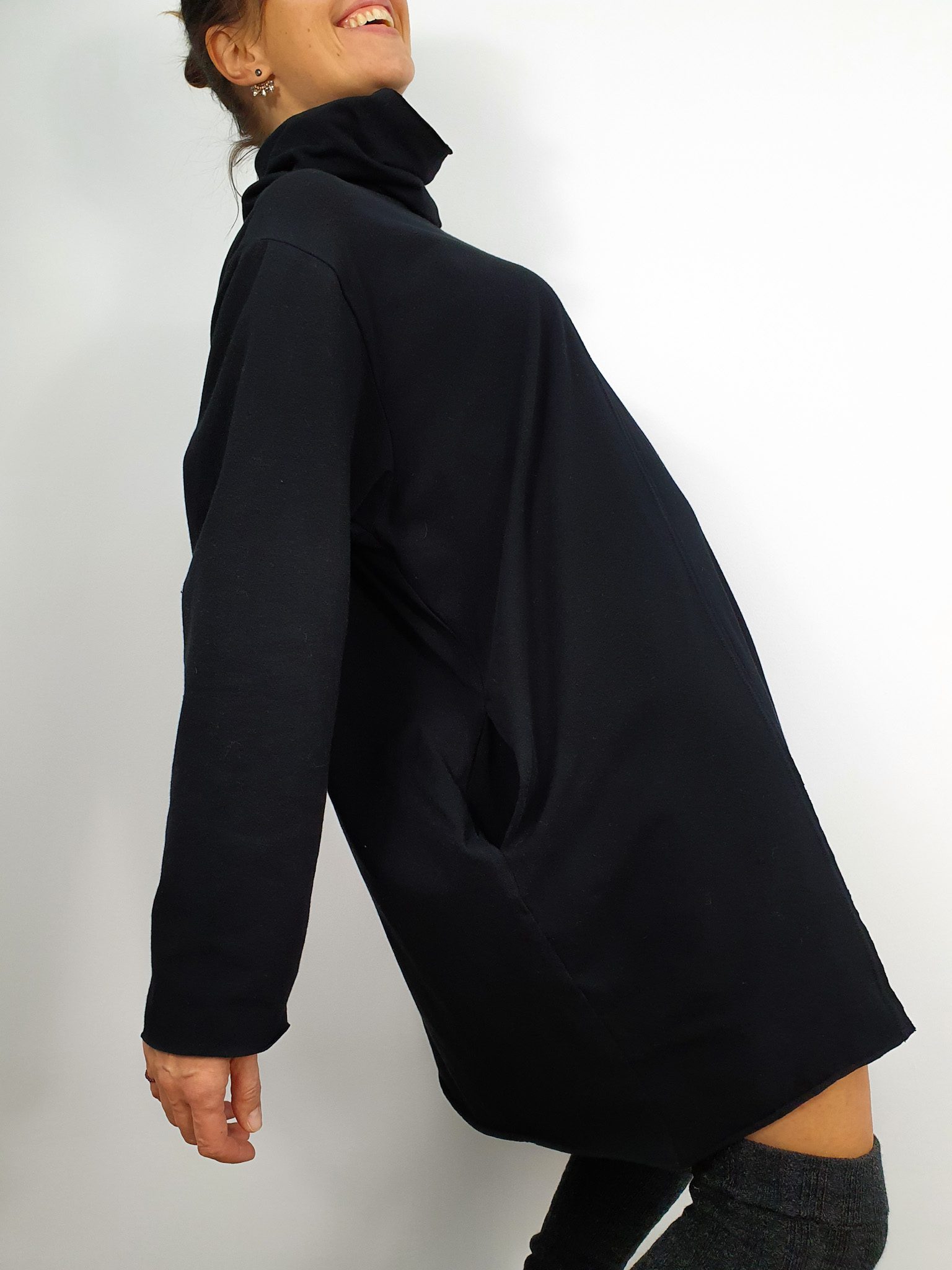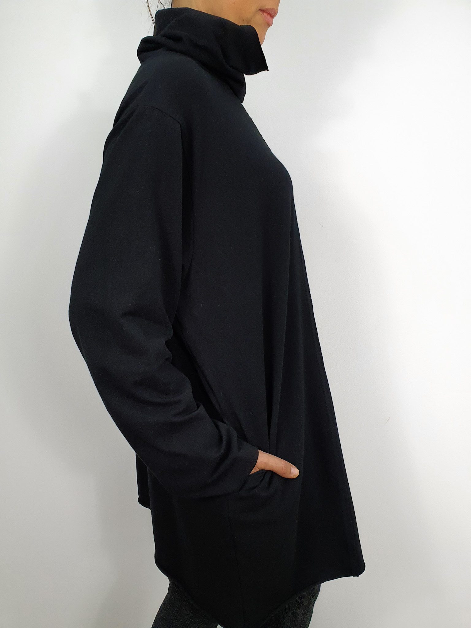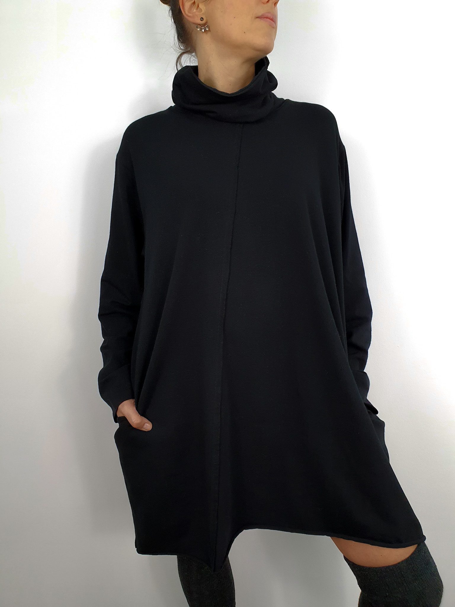 PROSTY PRZEKAZ to bawełniana sukienka, która założona do spodni czy leginsów świetnie pełni też rolę tuniki. Sprawdzi się o każdej porze roku. Ma prosty, oryginalny i nie pozbawiony charakteru fason. Luźny golf, który można dowolnie formować, wygodne kieszenie boczne, asymetryczne przeszycia i surowe wykończenie. Dzięki tej sukience stworzysz przyciągające wzrok stylizacje.
