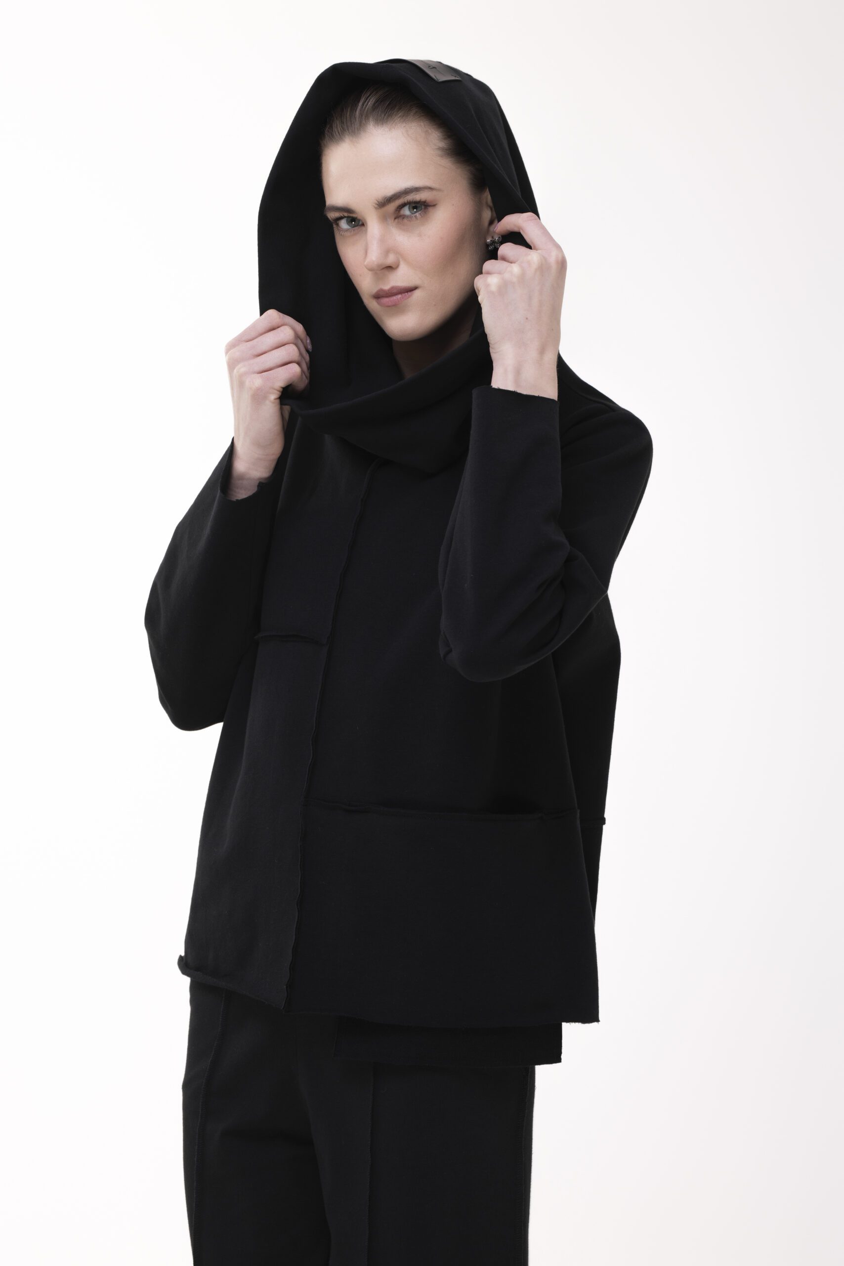 Miękka bawełna sprawia, że bluza jest wygodna i oddychająca, a luźny krój zapewnia pełną swobodę ruchów. Kaptur nadaje jej lekkość i nieformalny charakter, który pasuje zarówno do codziennych, jak i bardziej konceptualnych stylizacji.