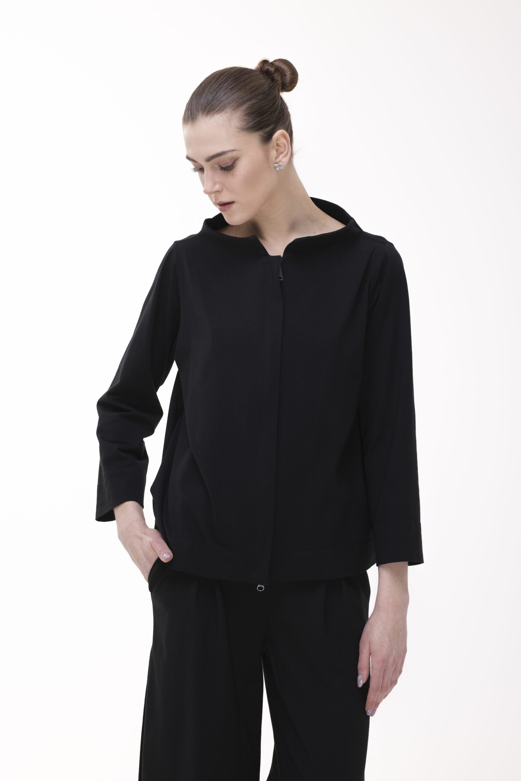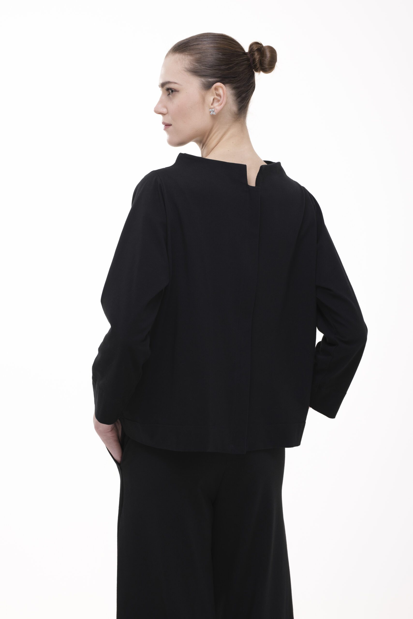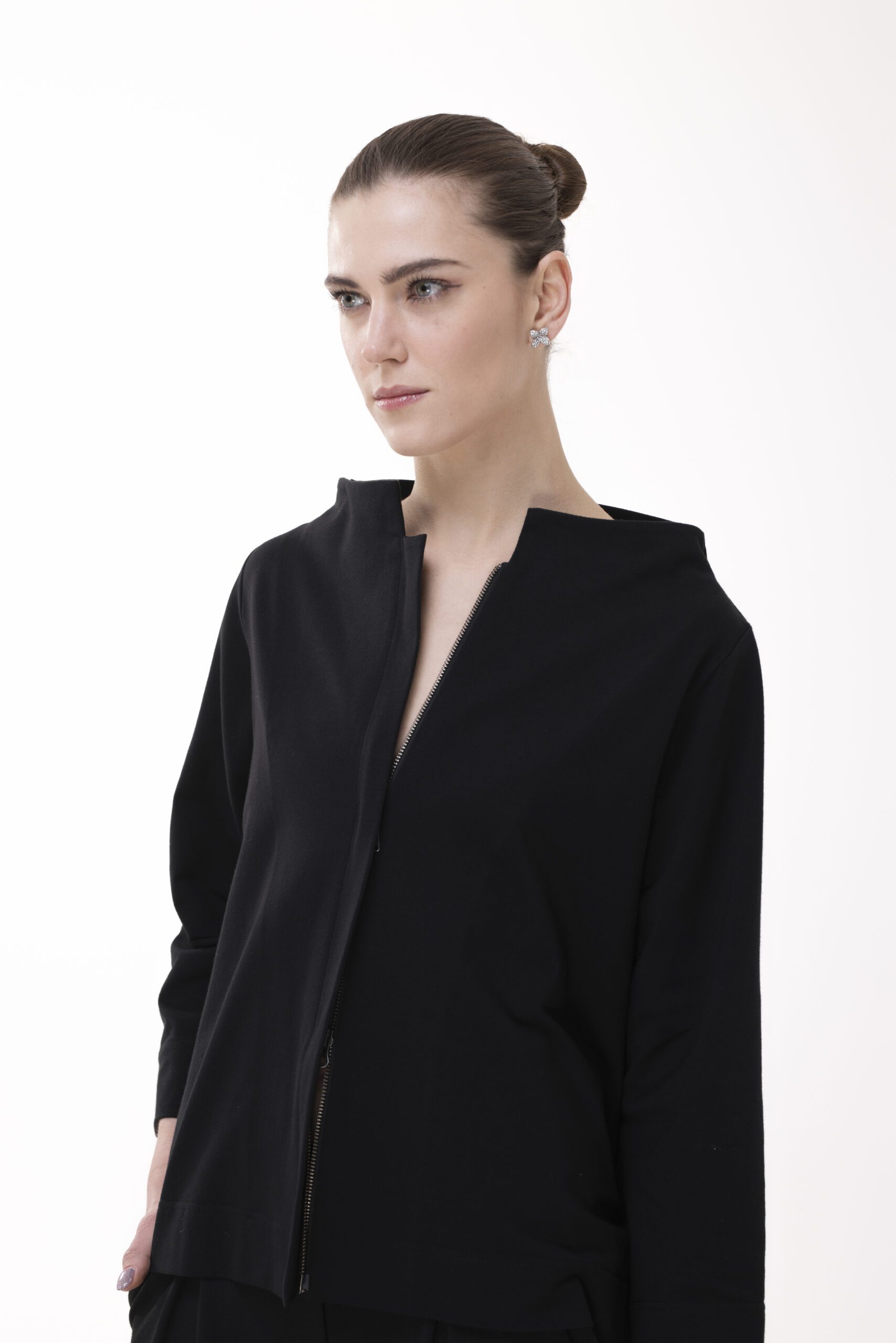VERSA – bluzka z długim rękawem o kroju trapezowym. Łączy w sobie nowoczesny krój typu pudełko z funkcjonalnym detalem – suwakiem, który możesz nosić zarówno z przodu, jak i z tyłu, tworząc różnorodne stylizacje. Jej trapezowy fason delikatnie opływa sylwetkę, podkreślając kobiecą linię, a jednocześnie zapewniając swobodę ruchów i komfort noszenia. Bluzka VERSA to manifest nowoczesnej kobiecości, która śmiało łączy surowość miasta z subtelnością natury. To element garderoby, który wyraża siłę i delikatność jednocześnie. Idealna na co dzień i na specjalne okazje, dla kobiet, które cenią sobie oryginalność, elegancję i komfort.