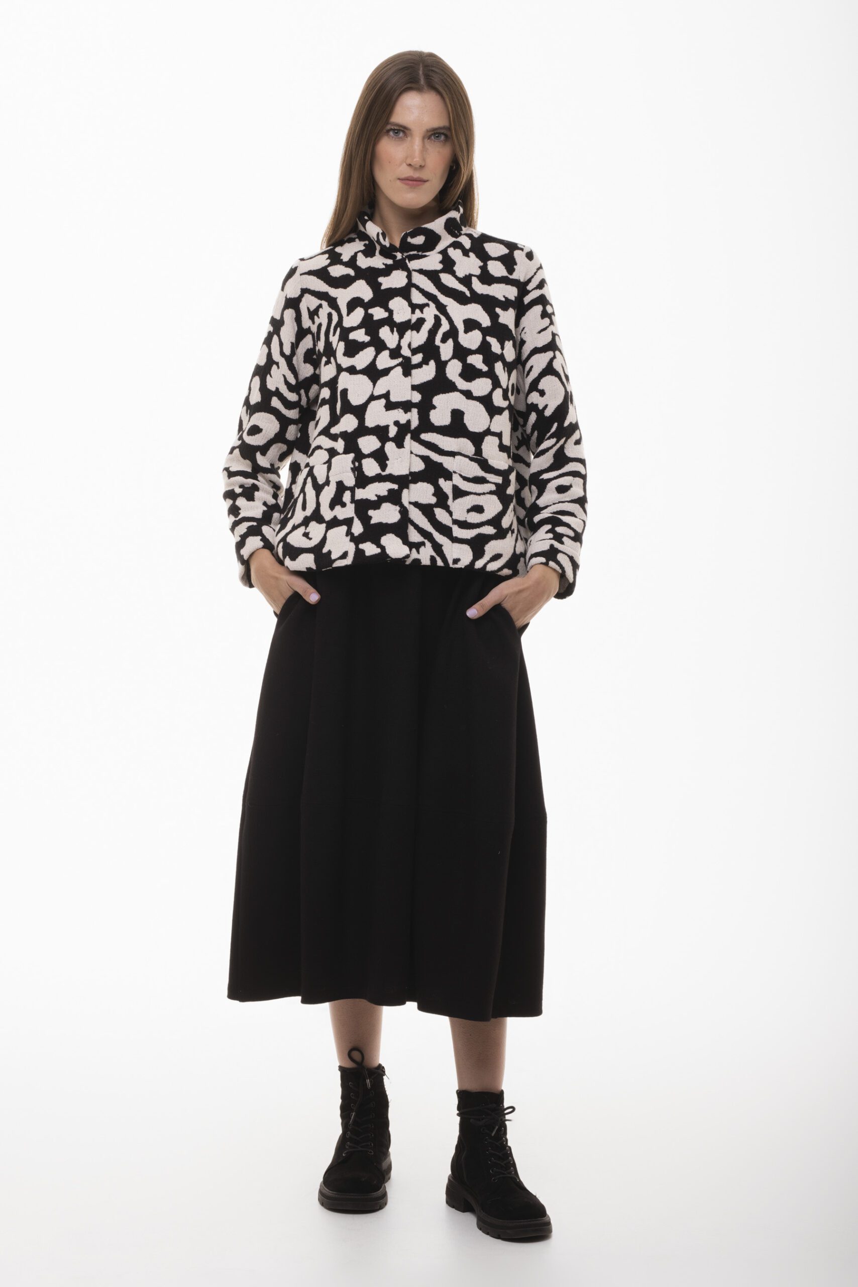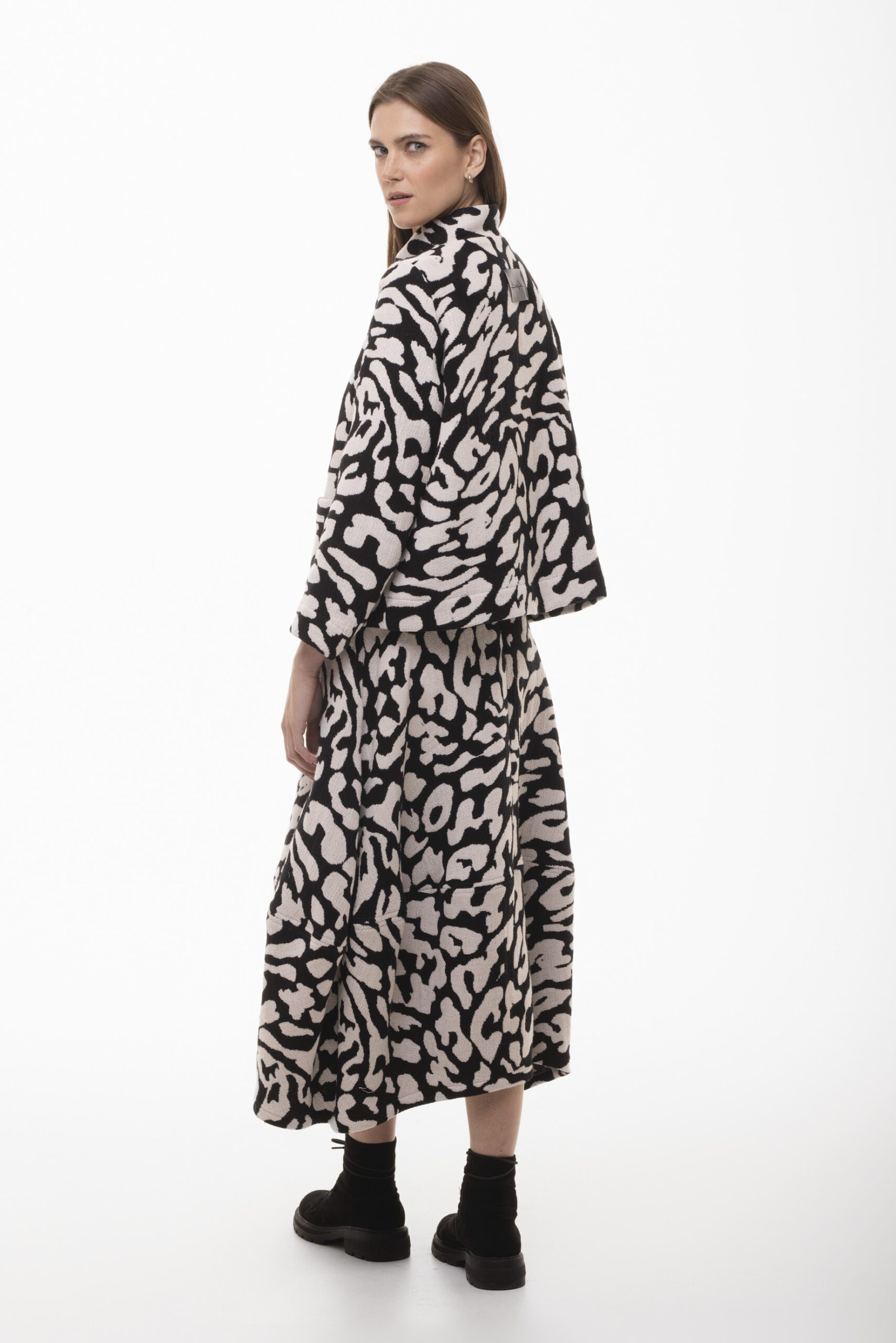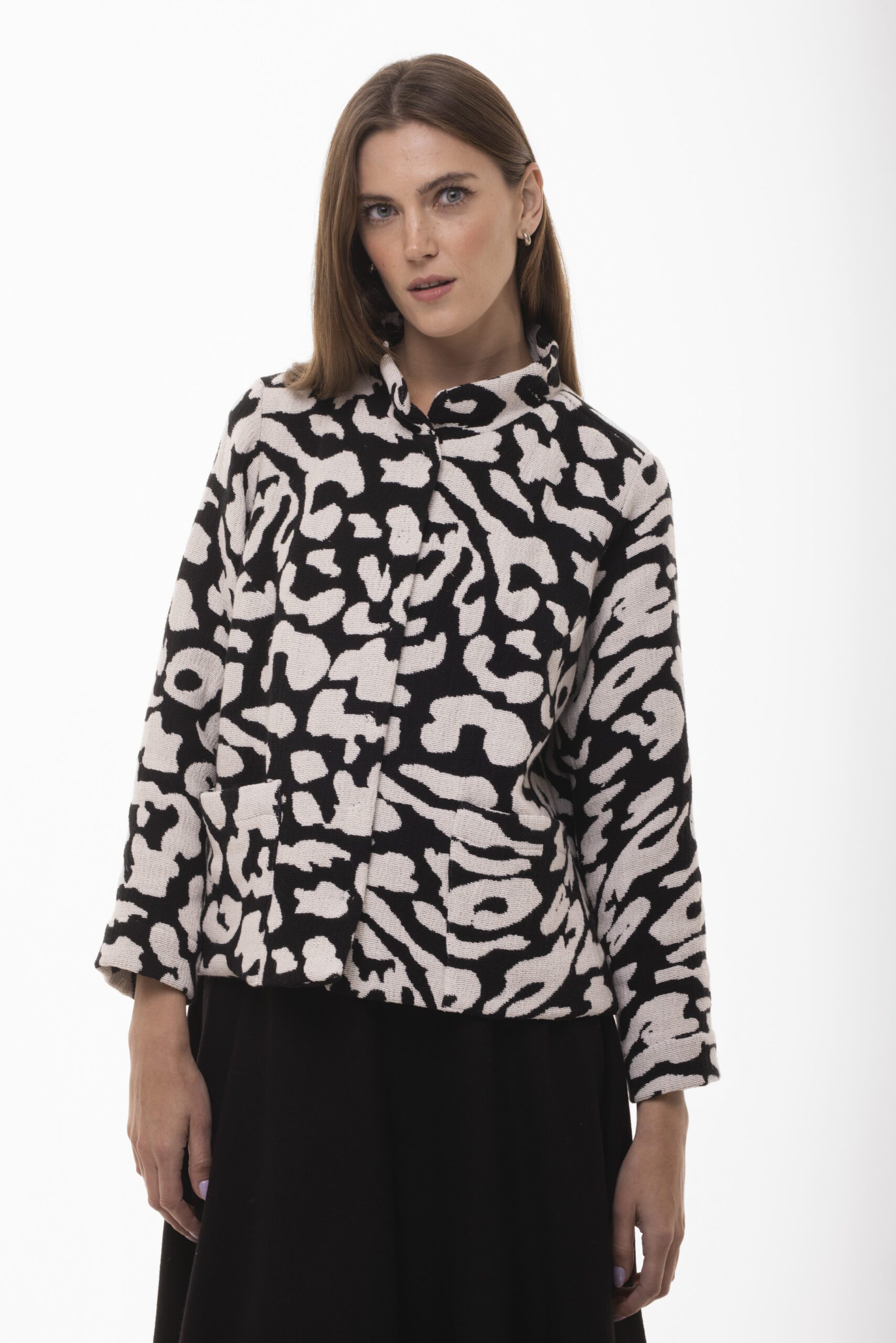 Więź – bawełniany żakiet w biało – czarne wzory. Żakiet ten to idealne połączenie surowego, miejskiego stylu z delikatnością natury. Wykonany z wysokiej jakości bawełny w klasycznej czarno-białej kolorystyce w łaty. Żakiet Więź jest doskonałym wyborem na chłodniejsze dni, kiedy chcesz łączyć styl z wygodą. To nie tylko modny element garderoby, ale również manifest siły, klasyki i odrobiny szaleństwa, idealny zarówno do biura, jak i na wieczorne wyjścia.